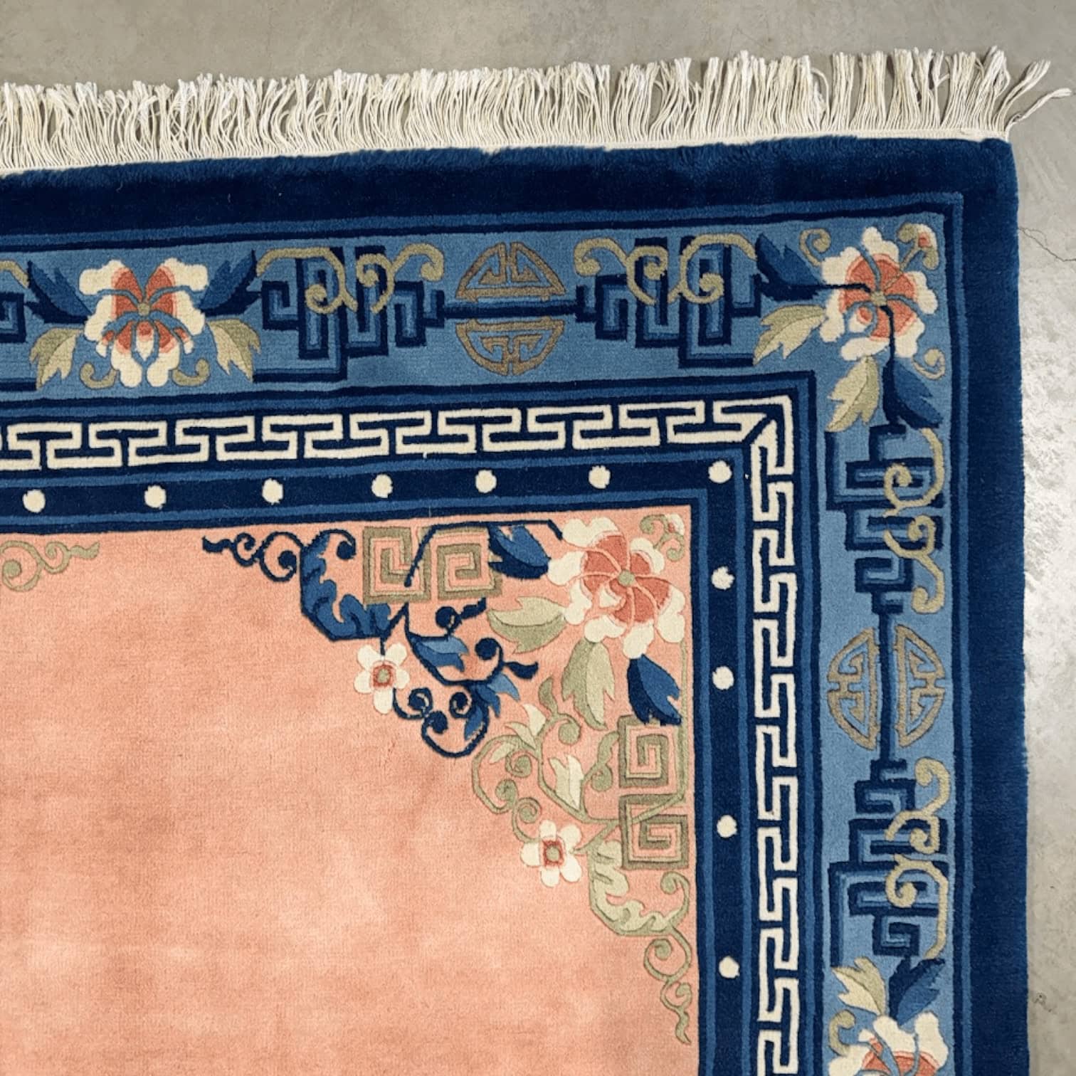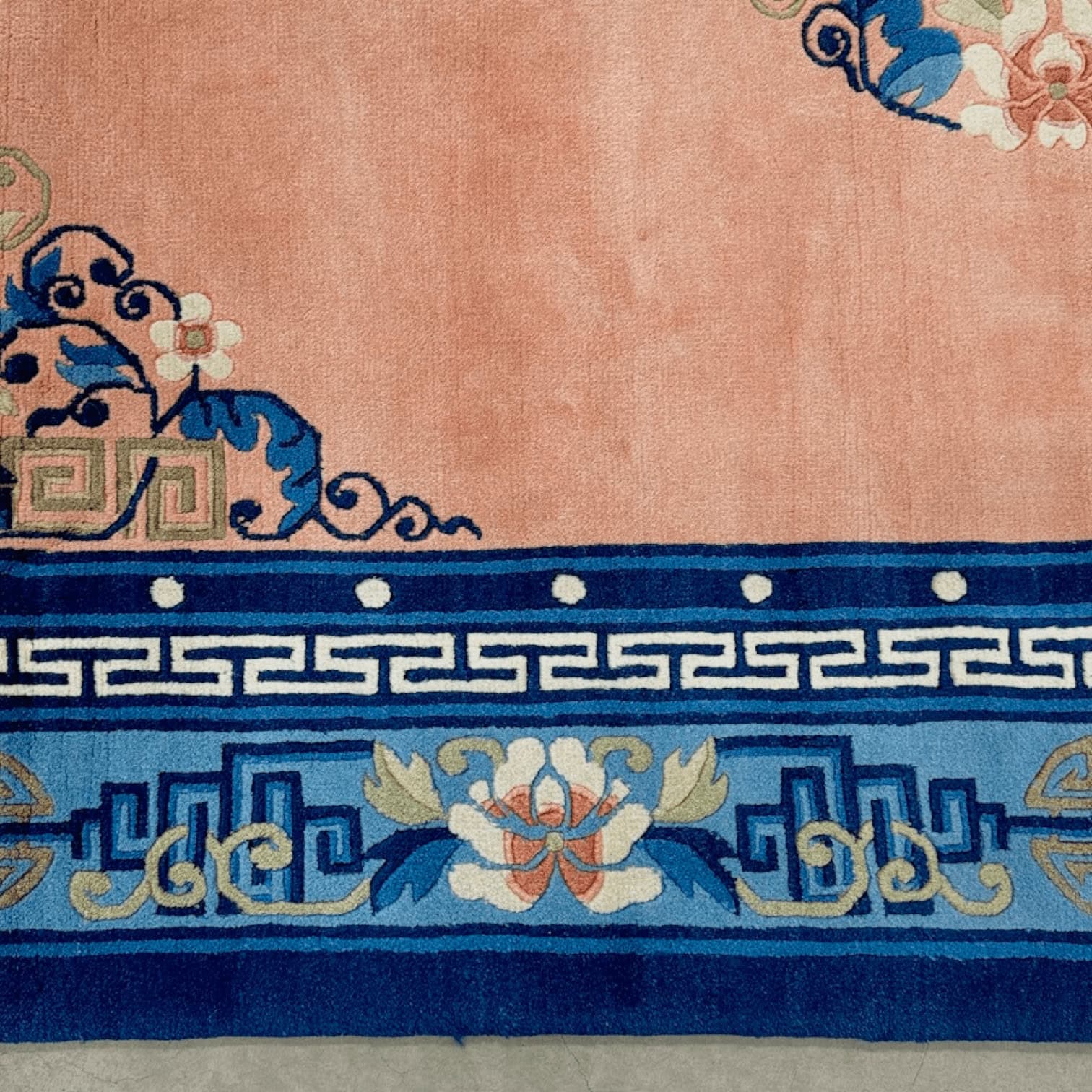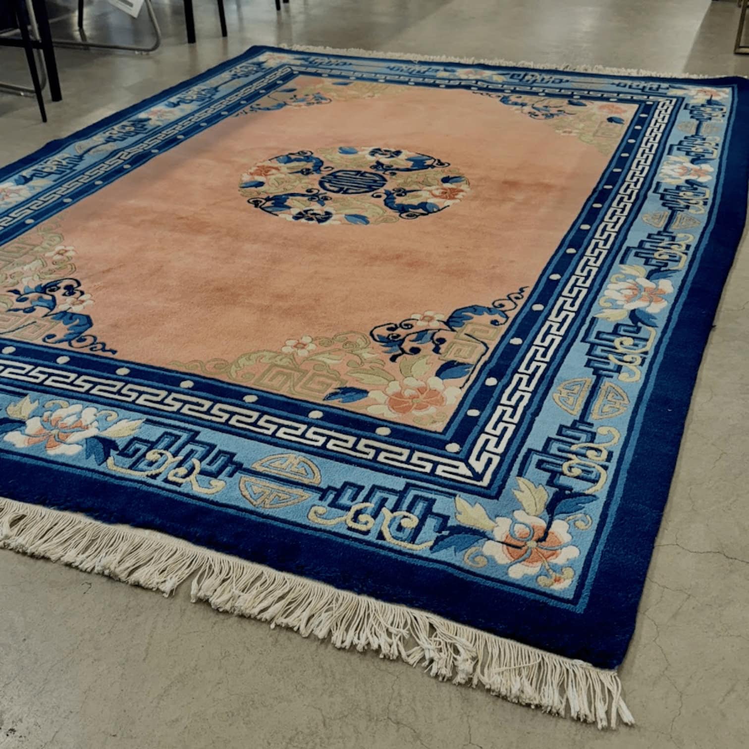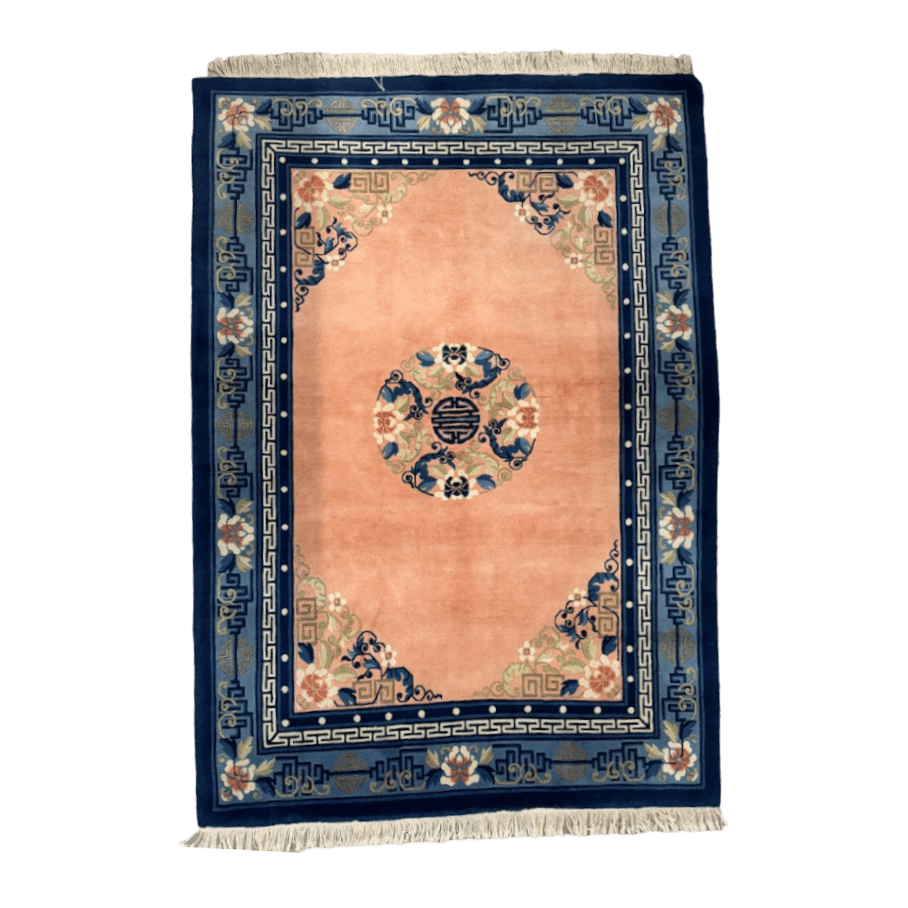 Atklājiet vēstures un izsmalcinātības burvību ar šo izcilo, antīko Ķīnas paklāju, kas datēts ar 19. gadsimta sākumu. Neskatoties uz savu antīko izcelsmi, šis paklājs ir saglabājies lieliskā stāvoklī, piedāvājot unikālu iespēju iegādāties jaunu, nepārspējamu vēstures liecību.