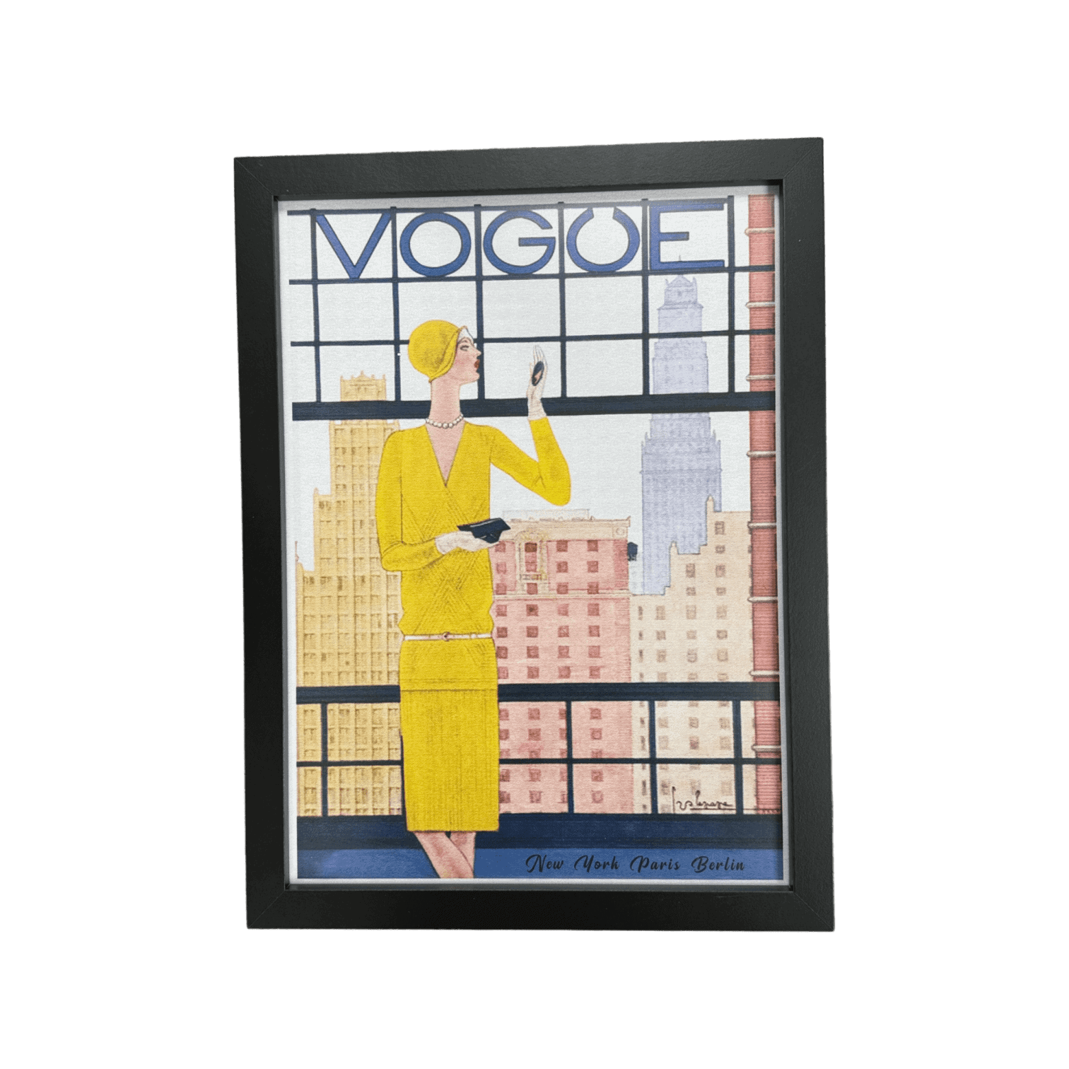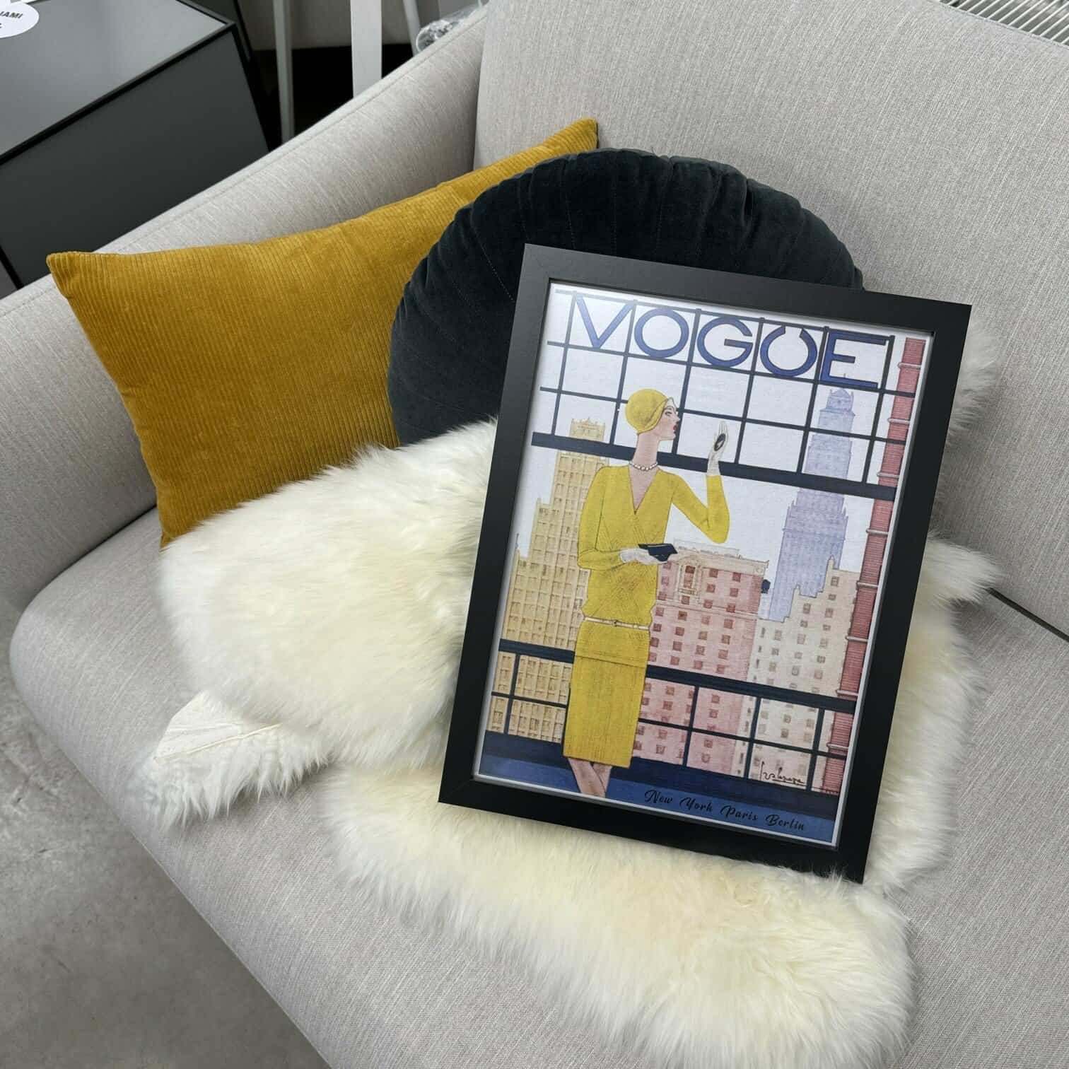 Apdruka ar rāmi “Vogue City” ieturēts vitāžas stilā ar skatu uz modes mekām.