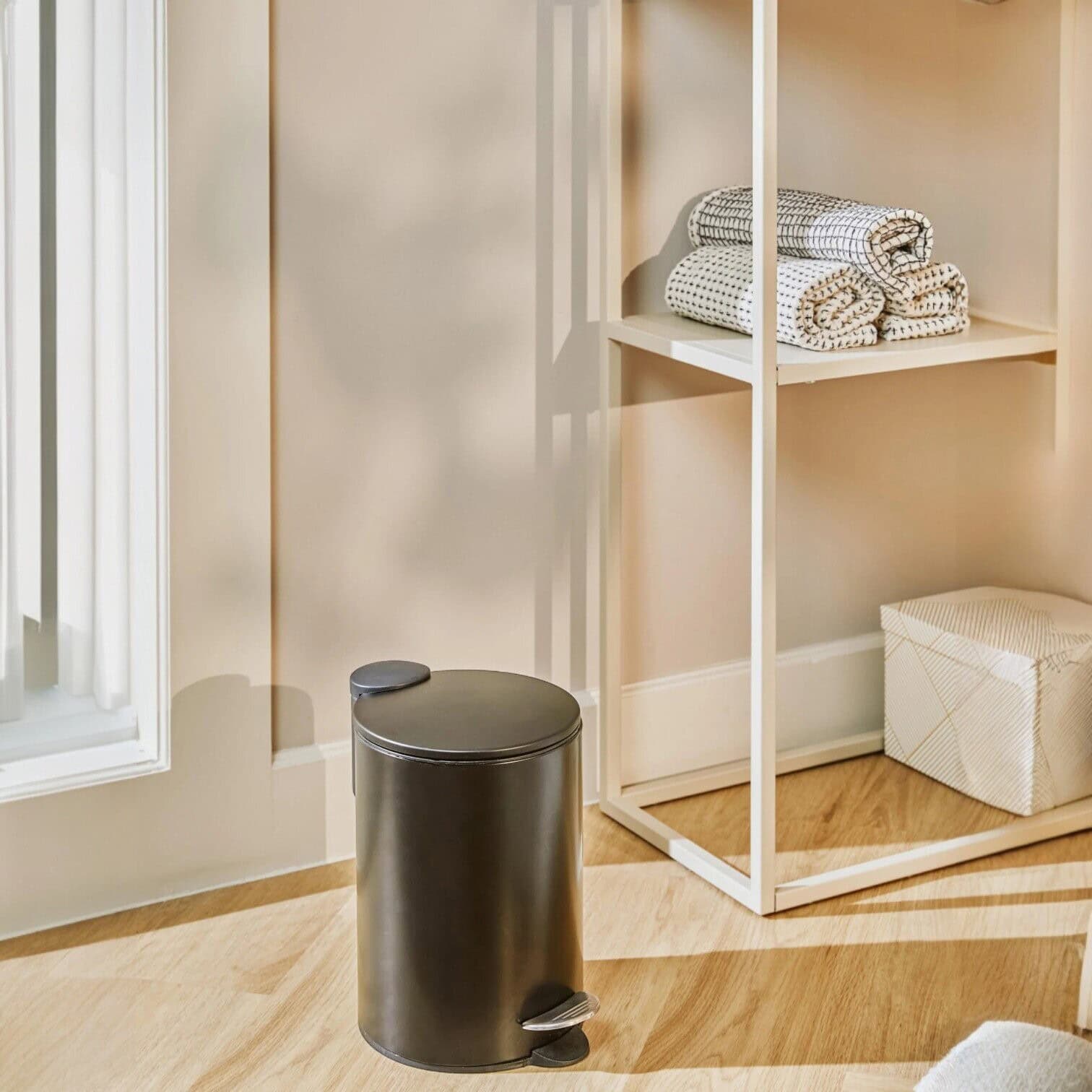 Atkritumu tvertne ar Soft-Close aizvēršanās funkciju, kas ar savu moderno dizainu un matēto virsmu kļūst par dekoratīvu akcentu interjerā. Praktiskais pedāļa mehānisms nodrošina ērtu un higiēnisku atvēršanu bez roku palīdzības. Iekšējo konteineru var viegli izņemt, lai iztukšotu, un tā gludā virsma ļauj to vienkārši un higiēniski notīrīt.
