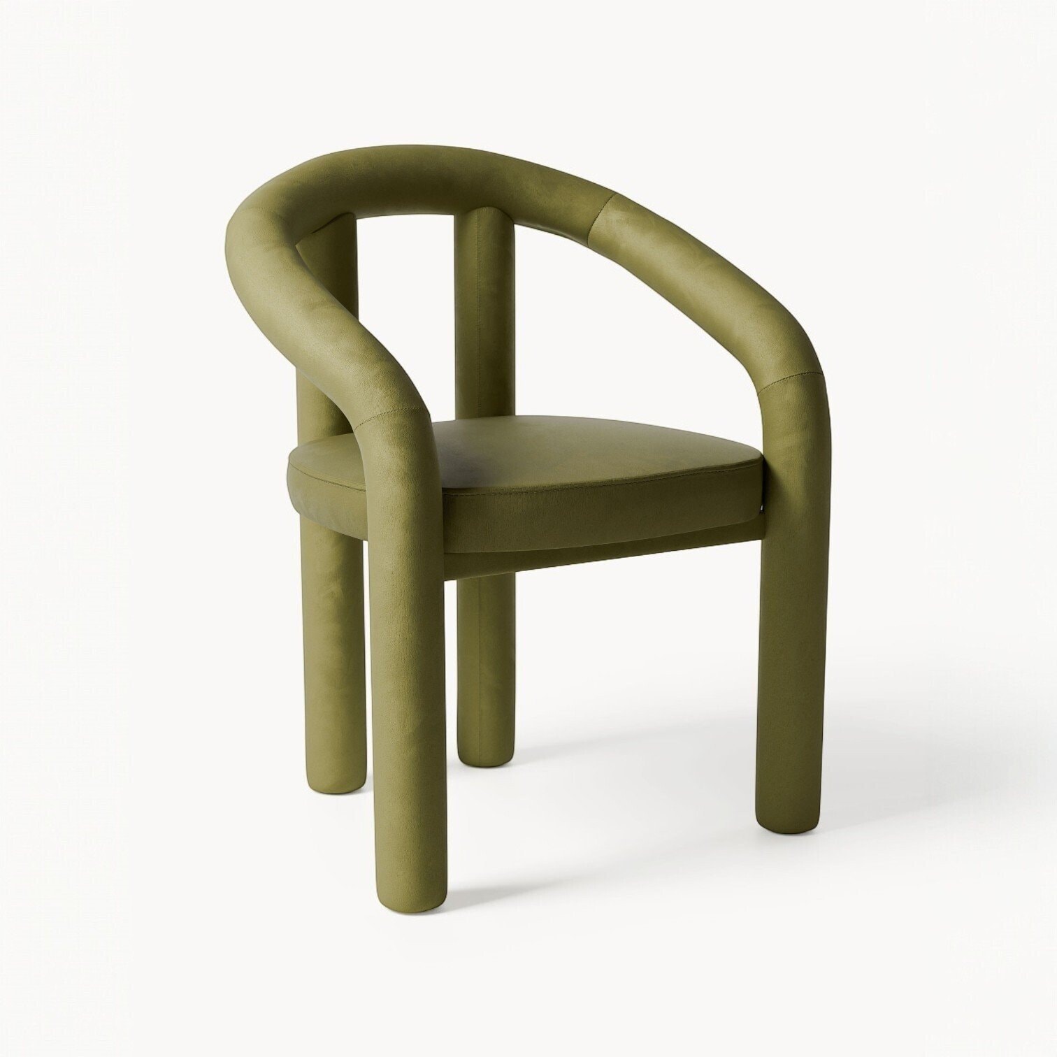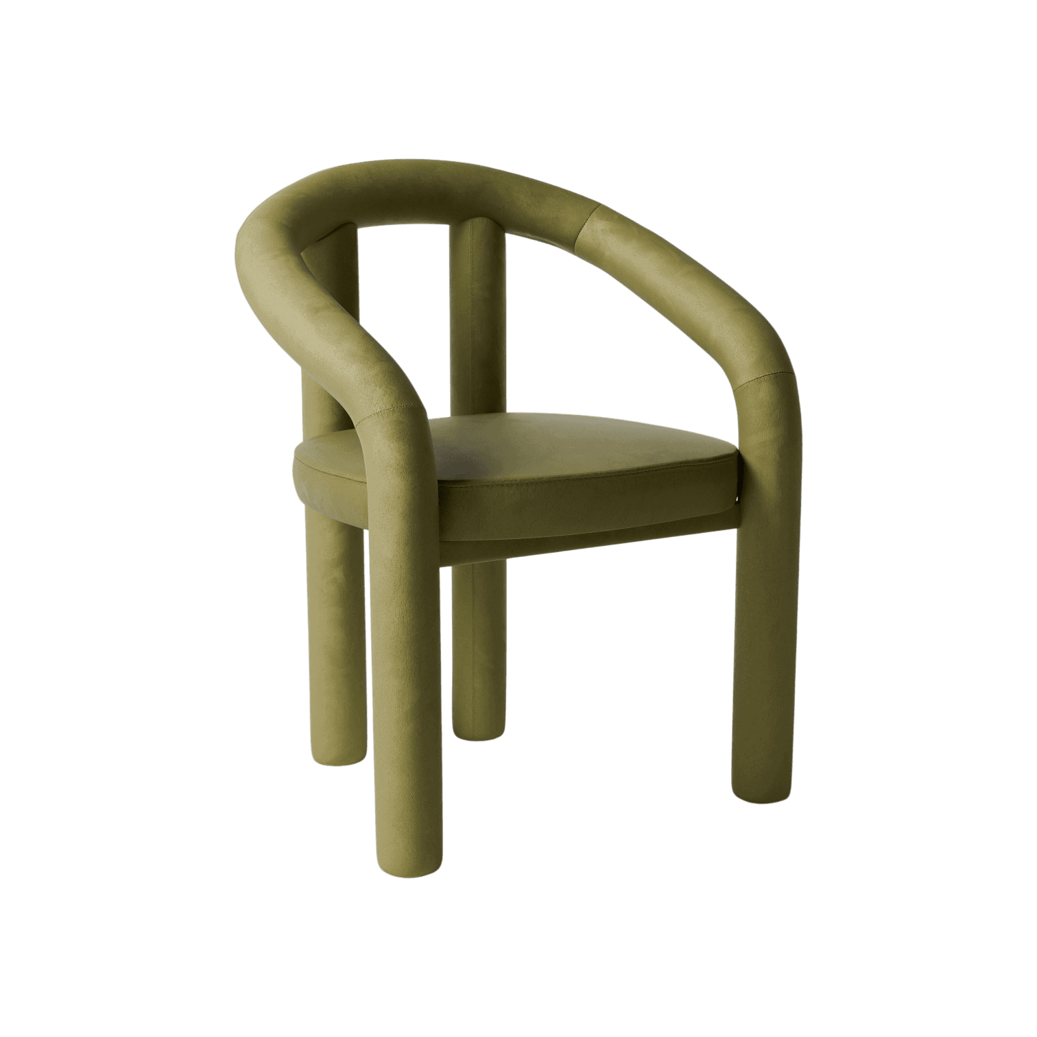 Šis modernais dizaina krēsls piesātināti zaļā tonī ir drosmīgs un dabisks interjera akcents, kas acumirklī piesaista uzmanību ar savu unikālo, cauruļveida konstrukciju. Tā avangarda siluets, ko veido masīvas, cilindriskas kājas un plūstoša, pusapaļa atzveltne, rada spēcīgu arhitektonisku tēlu, savukārt dziļi zaļā krāsa piešķir mēbelei luksusa sajūtu un vizuālu mieru. Šāds krēsls lieliski papildinās telpas, kurās tiek meklēts balanss starp industriālu modernismu un mājīgu eleganci.