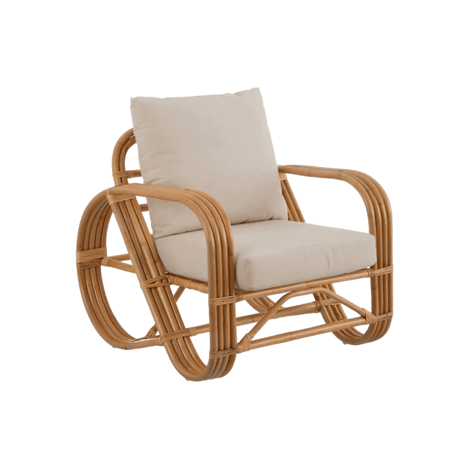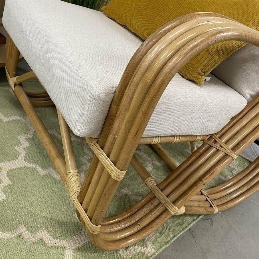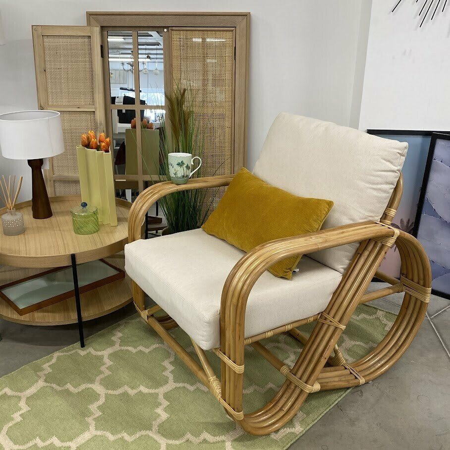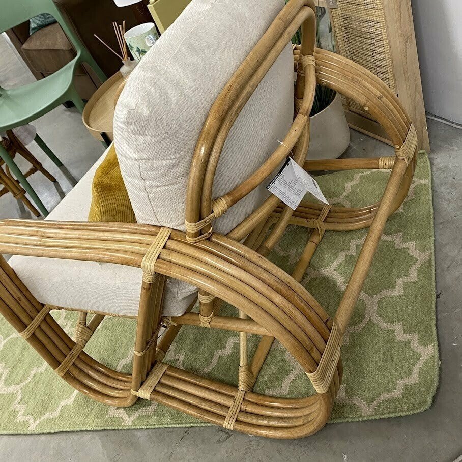 Dabīgās rotangpalmas krēsls ir stilīgs papildinājums dzīvojamai telpai vai terasei. Tā polsterētie spilveni nodrošinās ekstra komfortu un neaizmirstamus atpūtas brīžus.