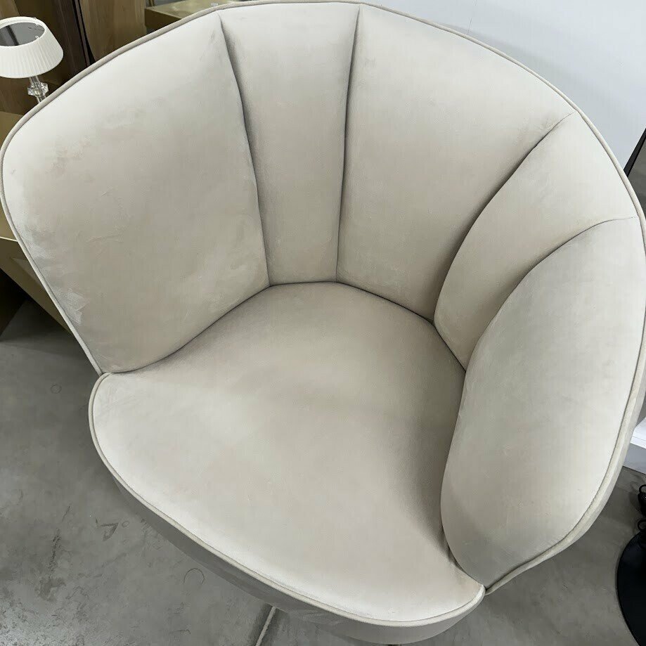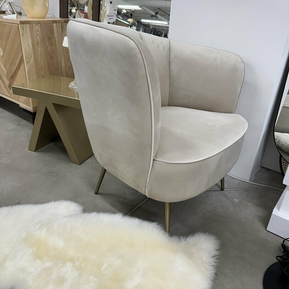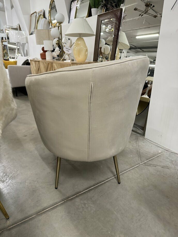 Šis krēmīgi baltais kokteiļkrēsls ar asimetrisko atzveltni lieliski izskatīsies jebkurā telpā un būs kā lielisks akcents.