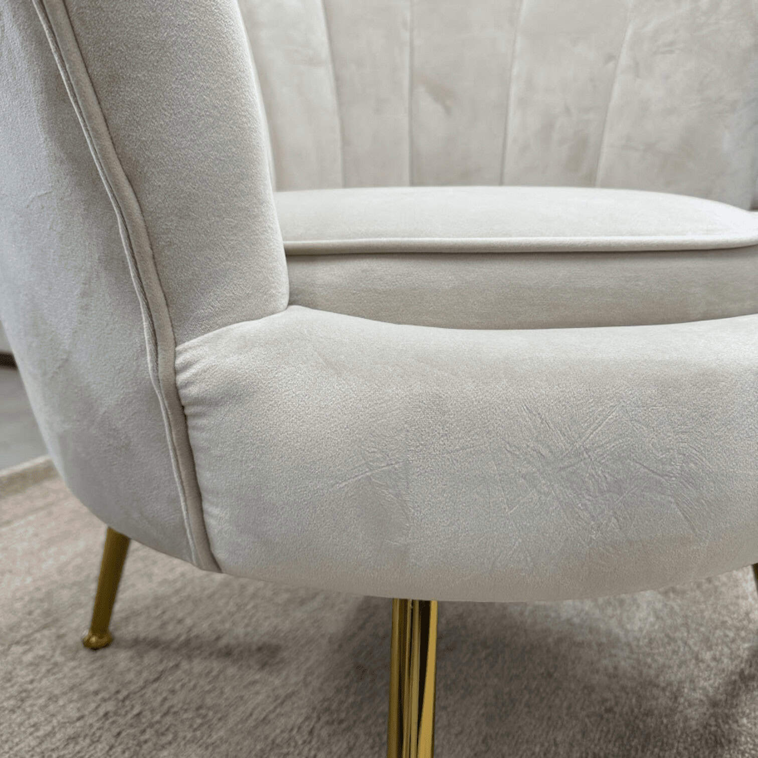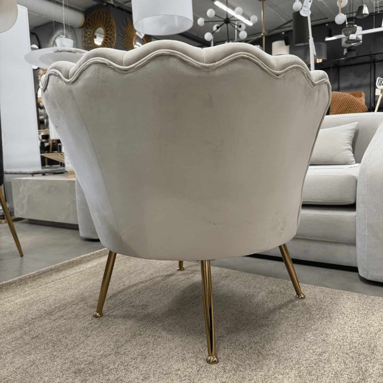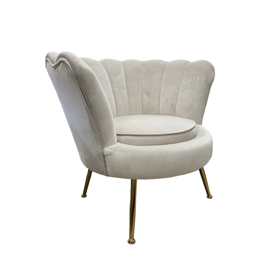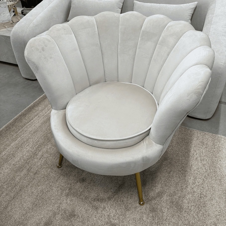 Aicinām iepazīties ar izsmalcināto Oyster atpūtas krēslu, kas izceļas ar savu unikālo dizainu un komfortu. Ar savu bēšo samta audumu un eleganto formu, šis krēsls piešķirs jūsu telpai greznību un modernu akcentu.