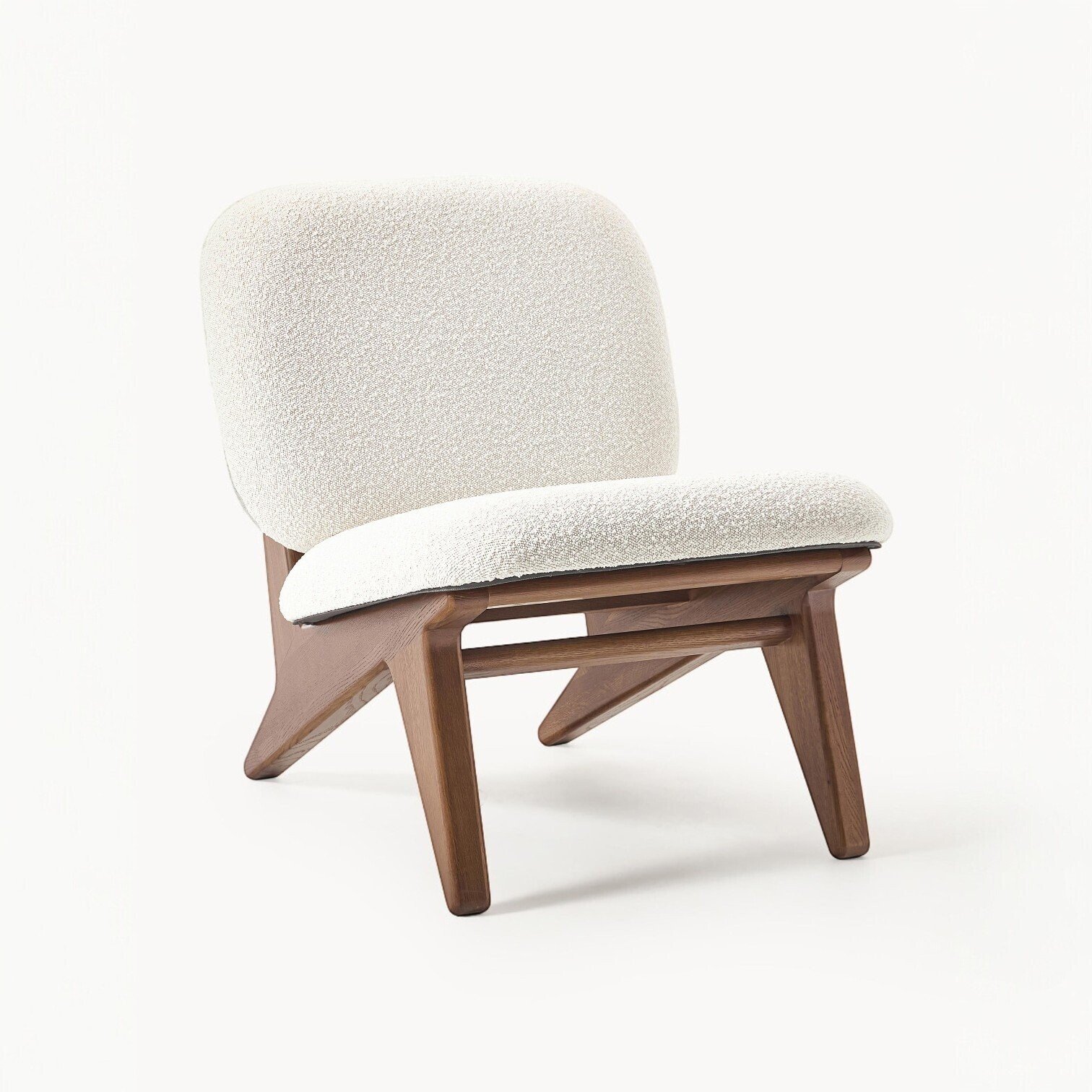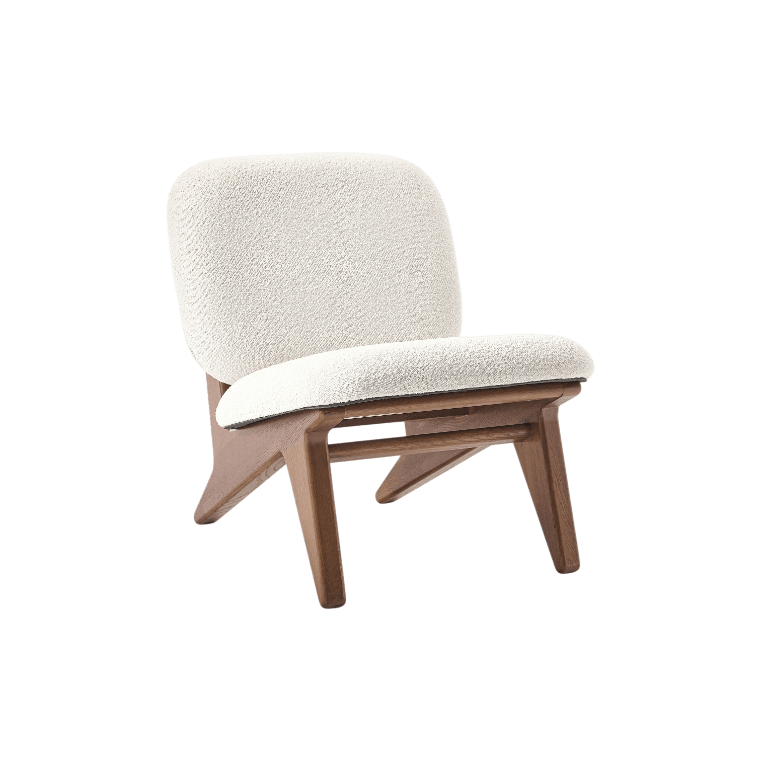 Elegants un ērts atpūtas krēsls, kas apvieno mūsdienīgu dizainu ar dabīgiem materiāliem. Tā maigais, teksturētais bouclé audums un siltais koka tonis rada mājīgu un stilīgu atmosfēru jebkurā interjerā.