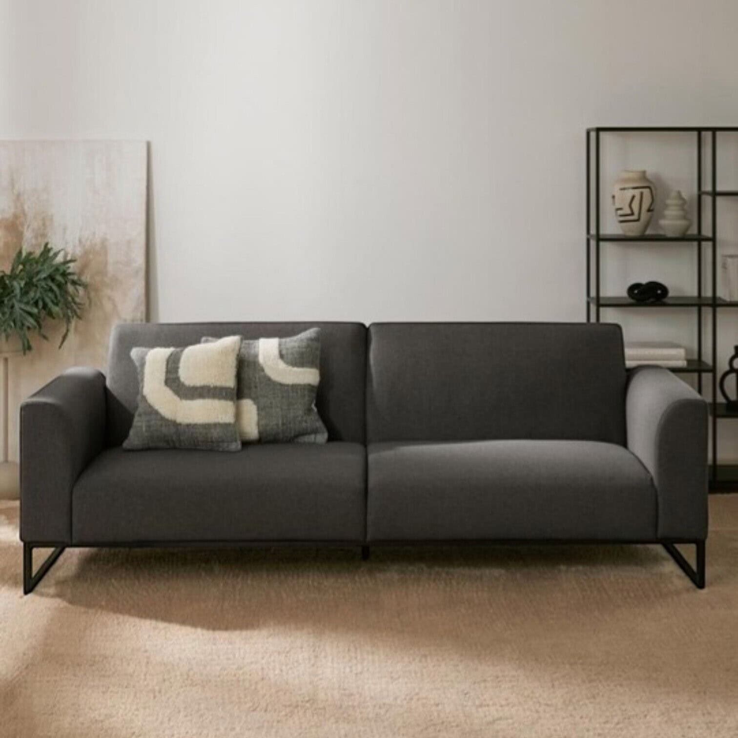 Moderns un daudzfunkcionāls dīvāns, kas apvieno izsmalcinātu dizainu ar praktisku pielietojumu. Šis dīvāns dienas laikā piedāvā ērtu sēdēšanas pieredzi, savukārt vakaros ātri un vienkārši pārveidojams par plašu guļamzonu. Piemērots gan viesistabai, gan viesu telpai vai nelielam dzīvoklim.