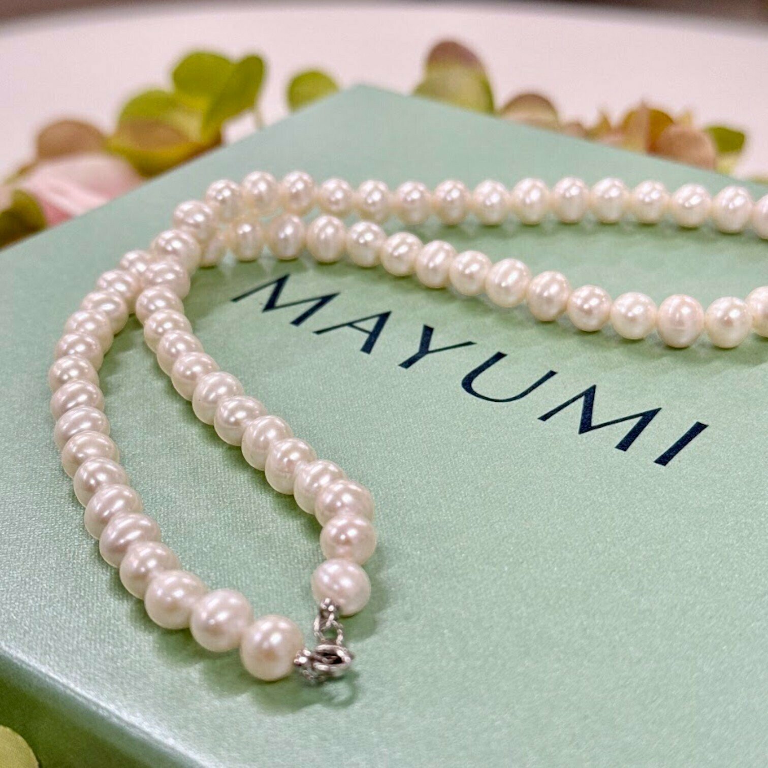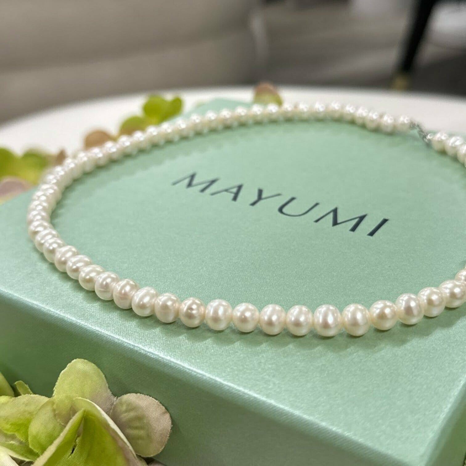 Mayumi ir viens no izcilākajiem itāļu zīmoliem, kas sniedz iespēju ikvienam izbaudīt pērļu radītos aksesuārus. Pērle ir viens no skaistākajiem brīnumiem, ko daba mums piedāvā: mazs un smalks dārgakmens. Šī skaistā kaklrota ir darināta no pusapaļām pērlēm ar 925 sudraba aizdari. Tā lieliski papildinās tavu izskatu netikai svētku dienās, bet arī ikdienā.