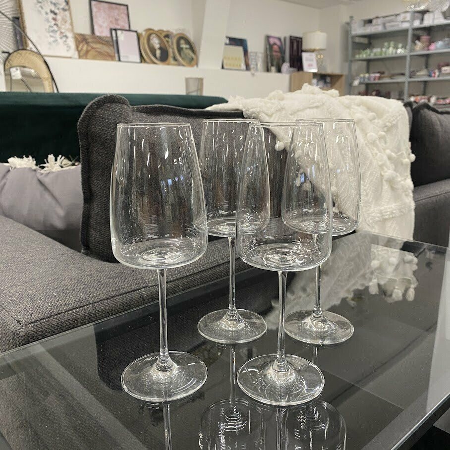 Šīs kristāla stikla glāzes lieliski izskatīsies uz jūsu svētku galda baudot baltvīnu ar sev tuvajiem.