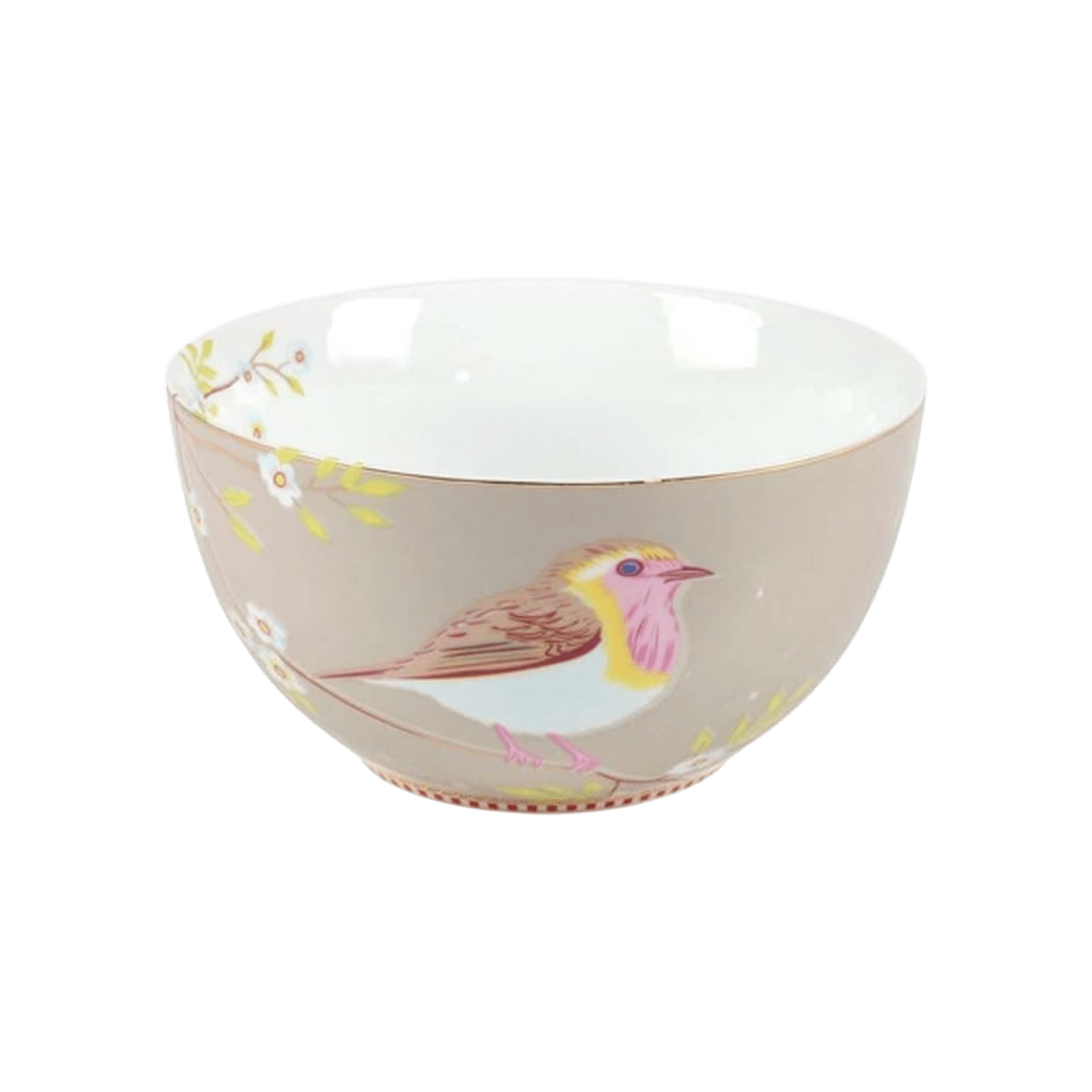 Šī Early Bird Khaki bļoda no Pip Studio ir universāla – lieliski piemērota brokastu pārslām, uzkodām, zupām un daudz kam citam! Bļoda ir dekorēta ar Early Bird dizainu, kas ietver izsmalcinātu ziedošu rakstu un putniņu, kas turpinās arī bļodas iekšpusē. Apakšējā malā to izceļ eleganta sarkanbalta un zelta svītru līnija, piešķirot izsmalcinātu noslēgumu.