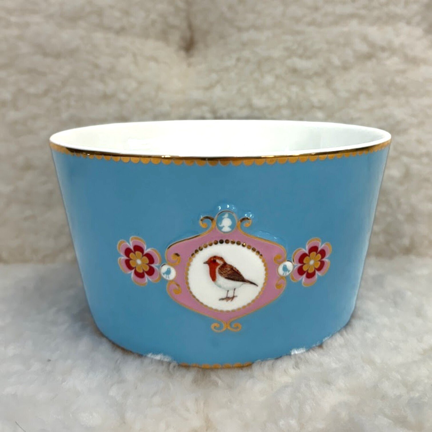 Šī zilā porcelāna bļoda ir daļa no Pip Studio visu laiku iecienītākās Love Birds kolekcijas. Bļodas centrā ir spilgtas krāsas dekors ar putniņu. Bļoda ir dekorēta ar zelta maliņu.