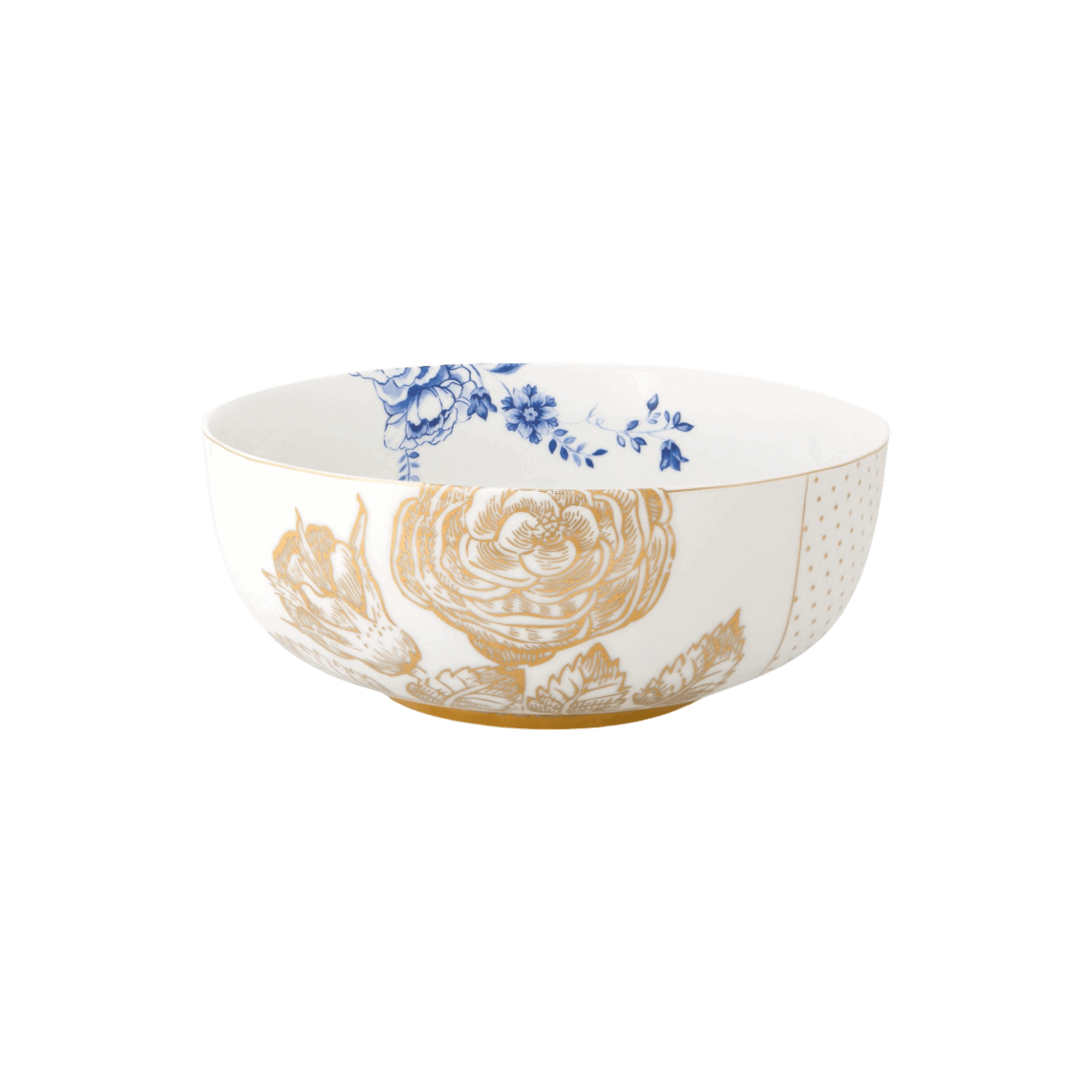 Šis trauks ir daļa no Royal White porcelāna komplekta. Royal White ir izsmalcināts porcelāns ar smalkiem ziliem krāsotiem elementiem un zelta elementiem.