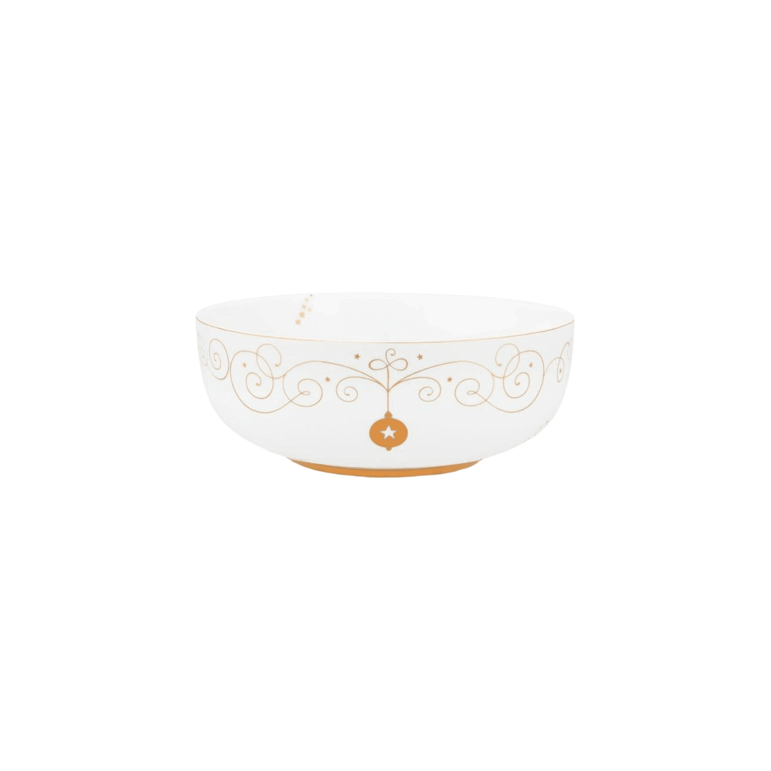 Veodojiet savu galda klājumu svētkiem ar šo Royal Winter White kolekcijas bļodu. Balto bļodu rotā zelta līnijas ar zelta rotājumiem visapkārt. Bļodas iekšpusē ir arī dažas mazas zelta zvaigznītes, un malas ir apdarinātas ar zeltu