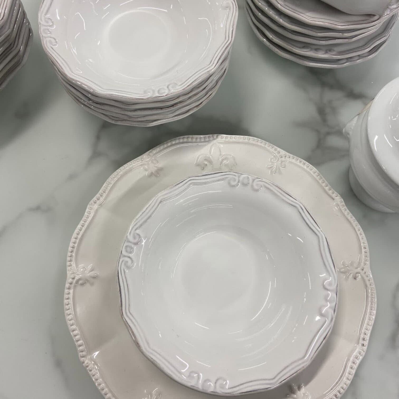 Bļodu komplektu Tiffany raksturo vintage stils un estētisks dizains ar īpašu apmales rakstu. Tas ir piemērots lietošanai cepeškrāsnī un mikroviļņu krāsnī. To var mazgāt trauku mazgājamā mašīnā.