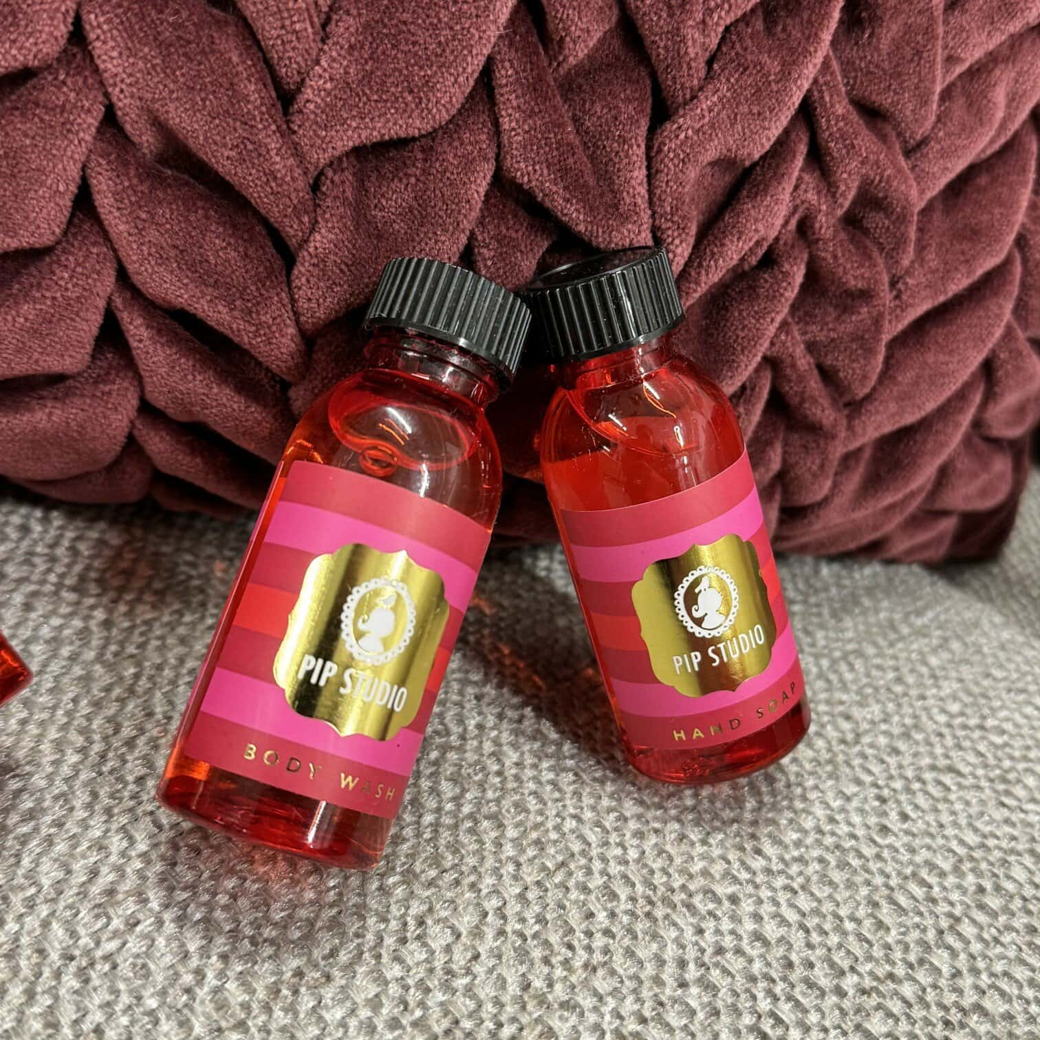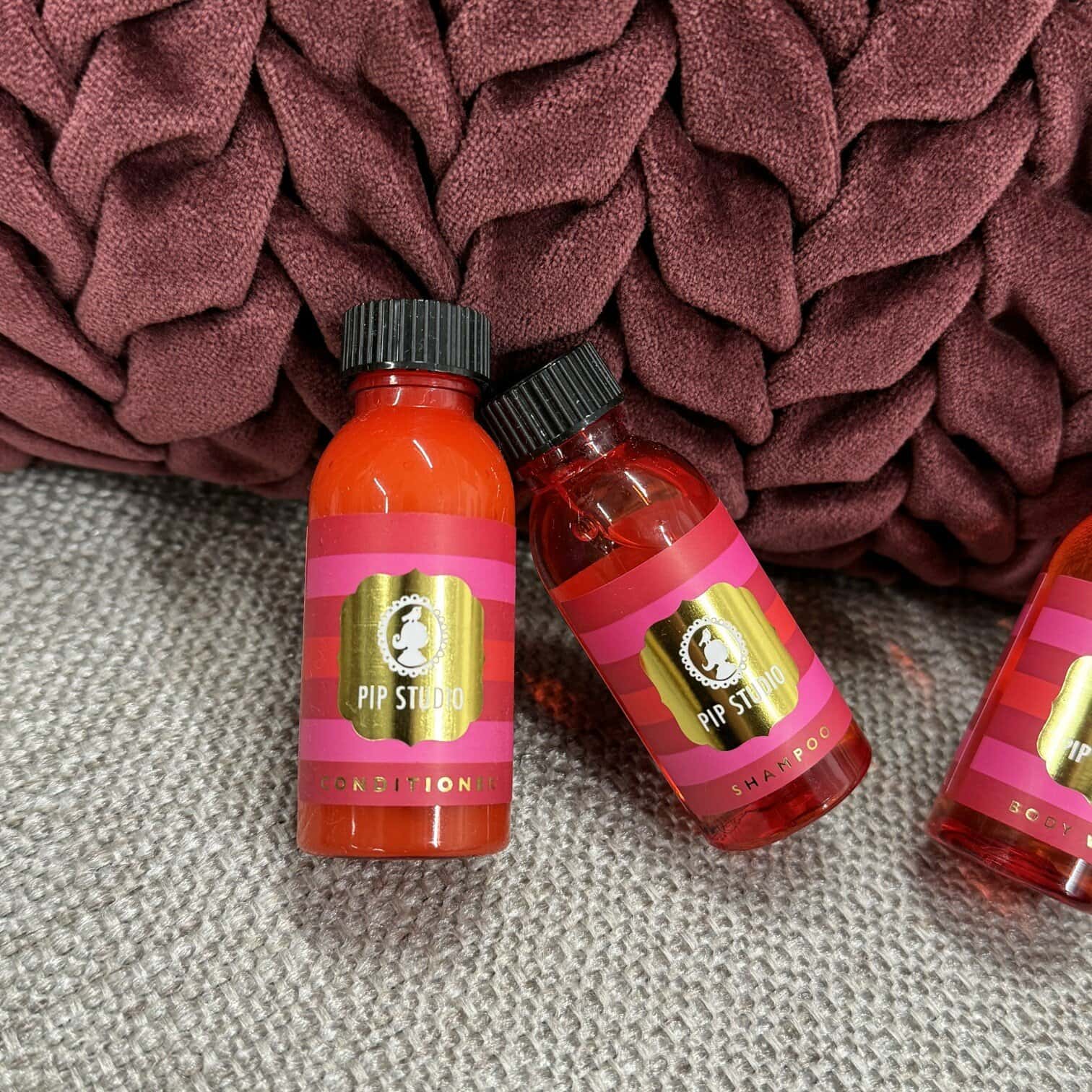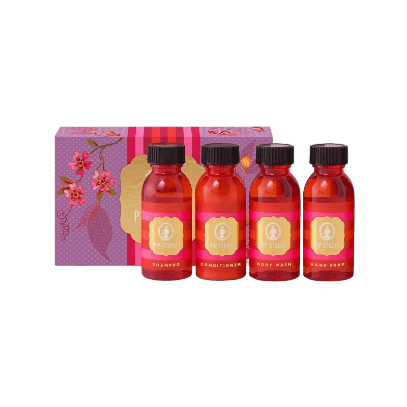 PIP Studio ceļojuma komplekts – 1gab šampūns, 1gab kondicionieris, 1gab dušas želeja, 1gab roku ziepes