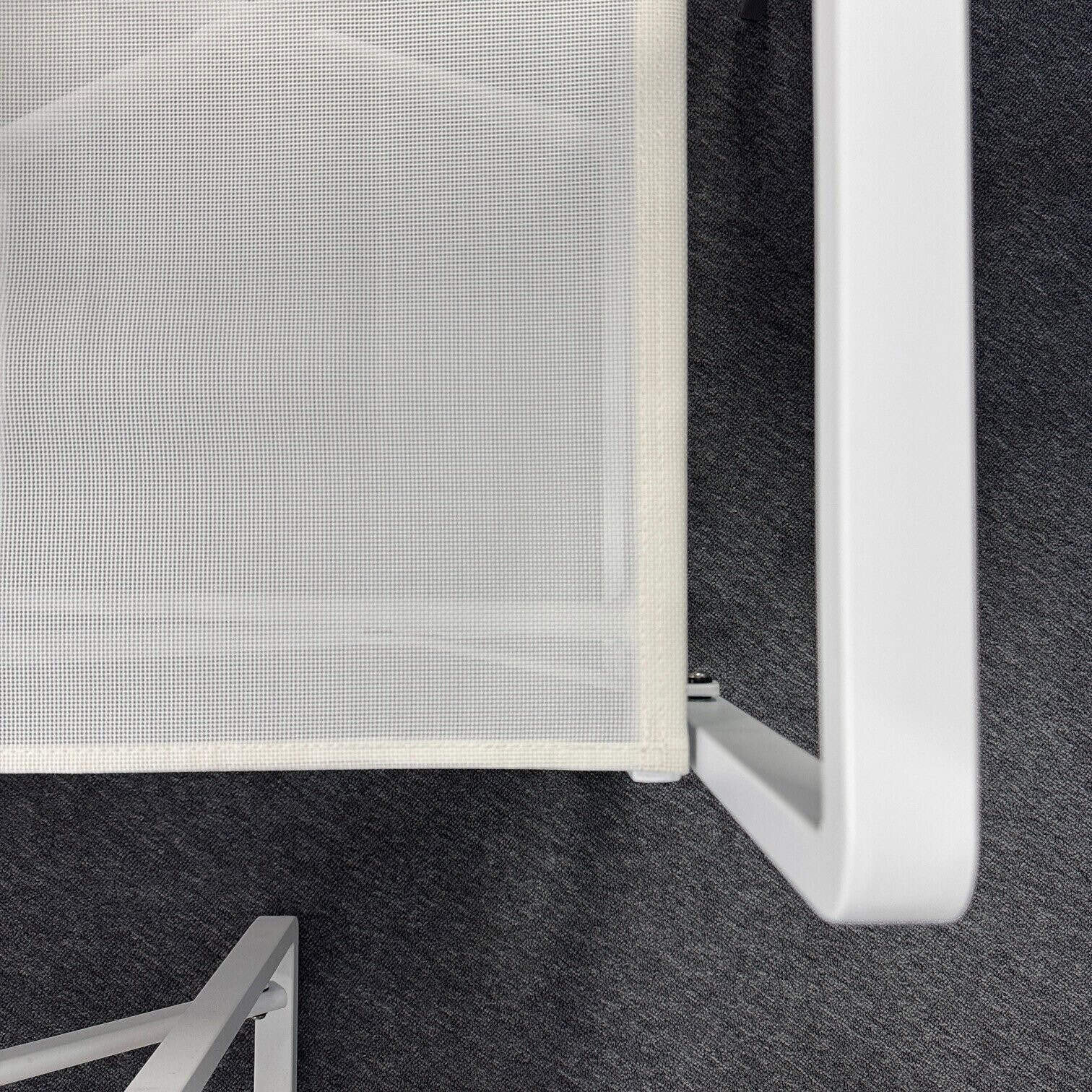 Sēdvirsma un atzveltne veidota no Textilene 1×1 auduma – elpojoša, izturīga un viegli kopjama materiāla, kas ātri žūst un saglabā formu. Nerūsējošā tērauda skrūves garantē papildu stabilitāti un noturību pret mitrumu.