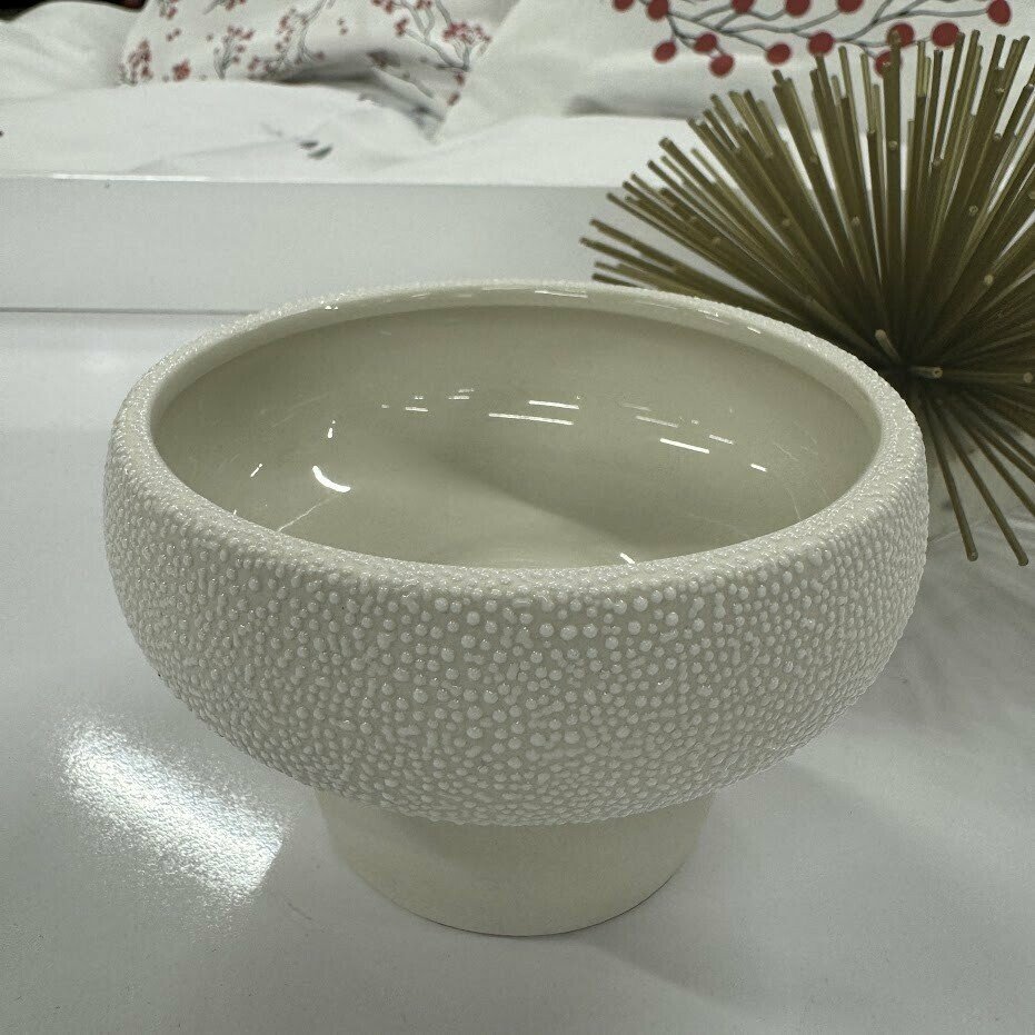 Skaista, balta bļoda ar tekstūru un pievilcīgu dizainu. Lielisks papildinājums jūsu interjeram.