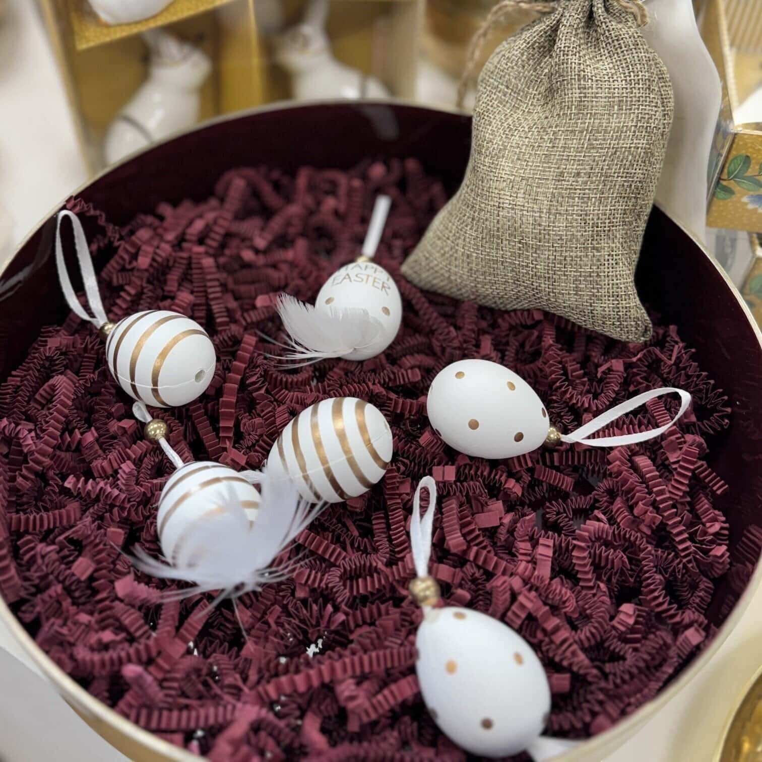 Stilīgs un pavasarīgs dekors no Hoff Interieur, kas piešķirs mājoklim svētku noskaņu. Komplektā 6 dekoratīvas olas ar “Happy Easter” dizainu – lieliski piemērotas galda klājumam, interjera dekorēšanai vai kā neliels svētku akcents.