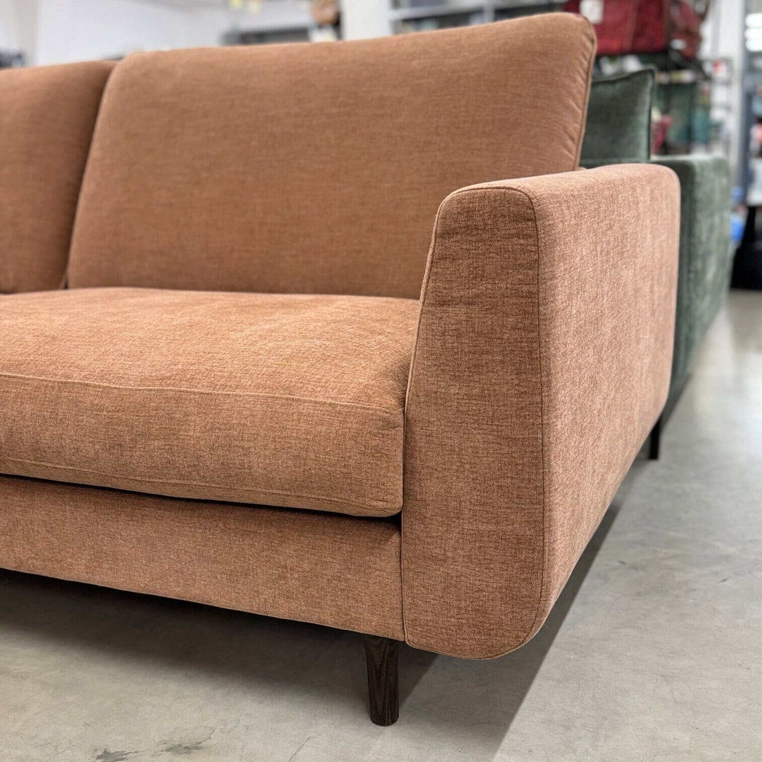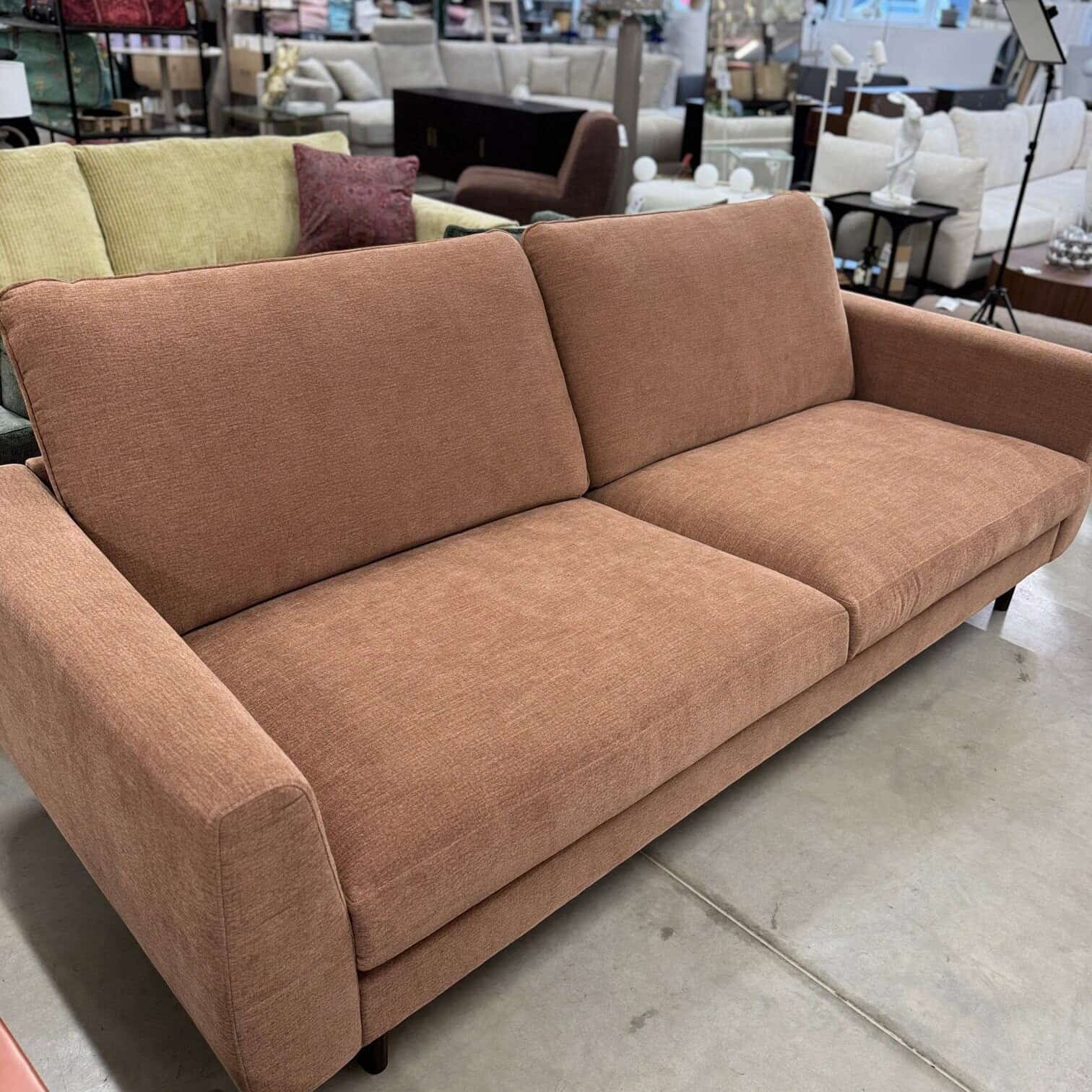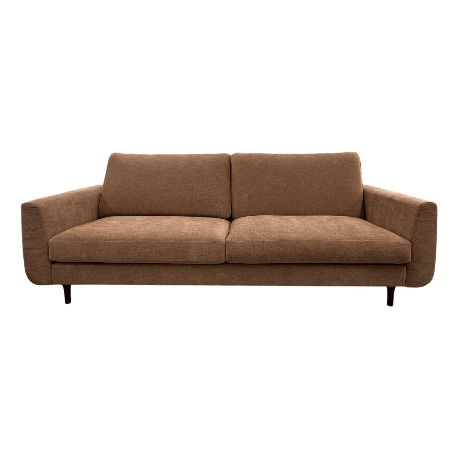 Stilīgs un ērts dīvāns, kas lieliski piemērots mūsdienīgai viesistabai. Tā tīrās līnijas un harmoniskās proporcijas rada sakārtotu un vieglu interjera sajūtu, savukārt siltā auduma tonalitāte piešķir telpai mājīgumu.