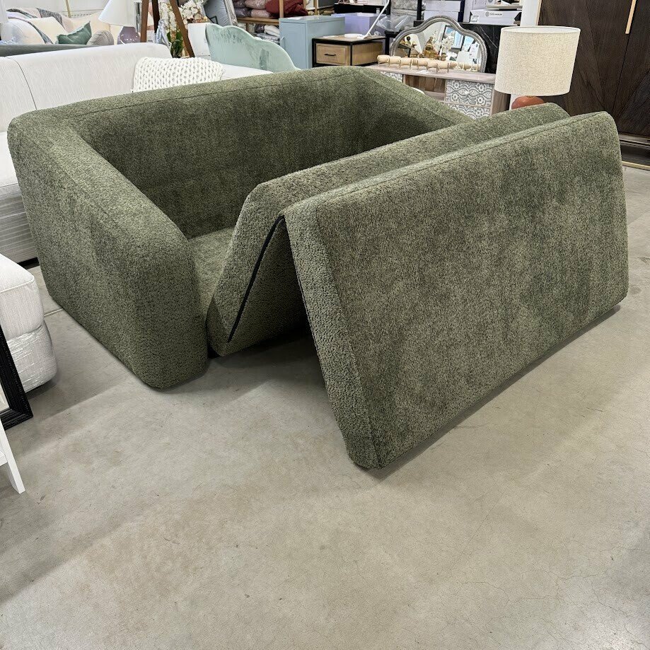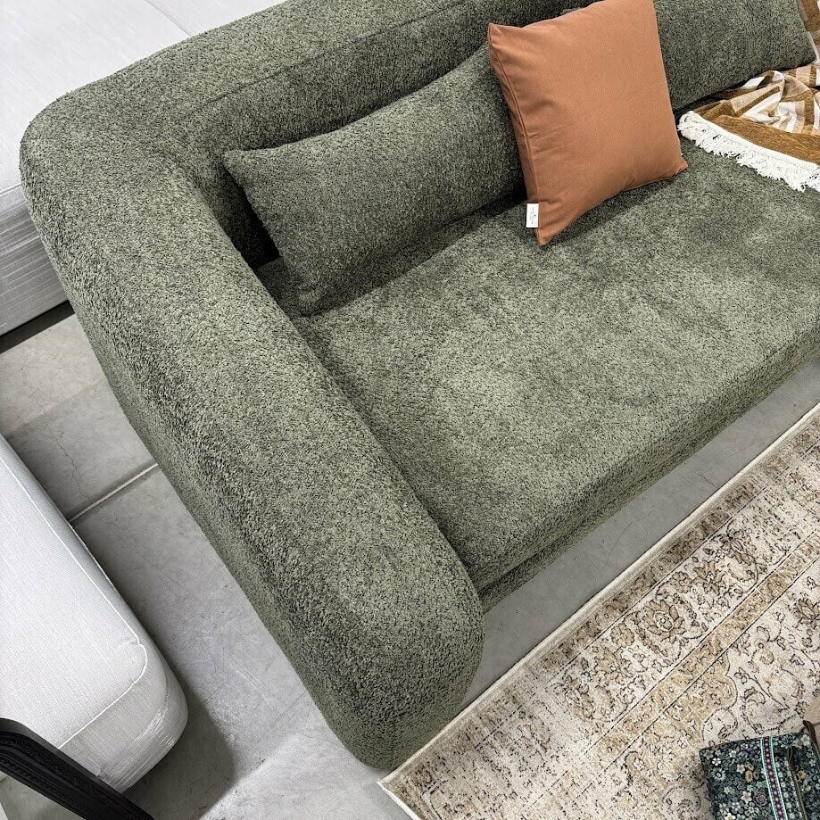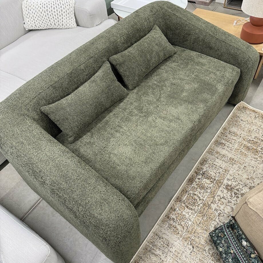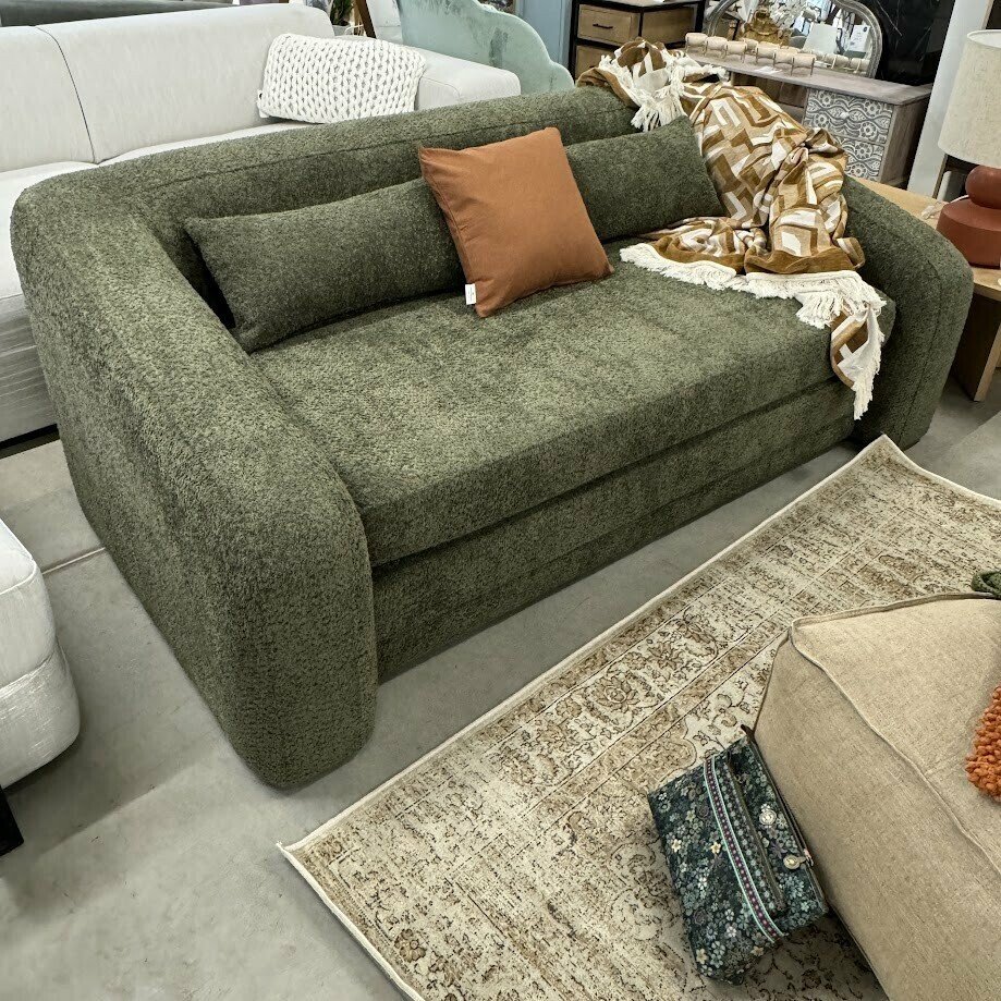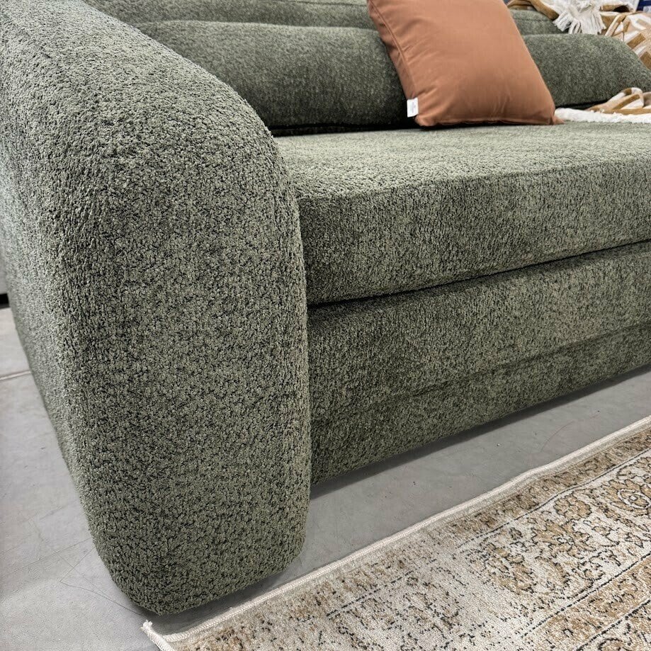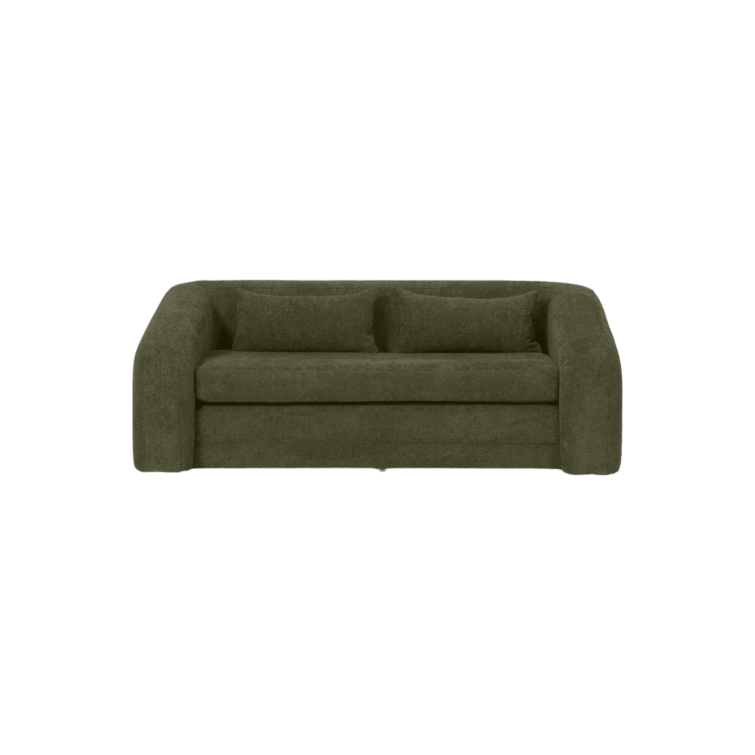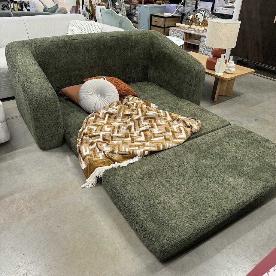 Stils satiekas ar funkcionalitāti: noapaļotas malas, ģeometriski spilveni un mīksts polsterējums. Iespēja izlocīt mēbeles ir lielisks risinājums, kad viesi ierodas negaidīti. Būs priecīga gan mamma, gan sievasmāte, kad atbrauks ciemos un būs, kur ērti pārnakšņot ne vienu vien nakti. Dažu mirkļu laikā varat to pārveidot no elegantām atpūtas mēbelēm par ērtu gulēšanas vietu. Teddy tipa audums.
