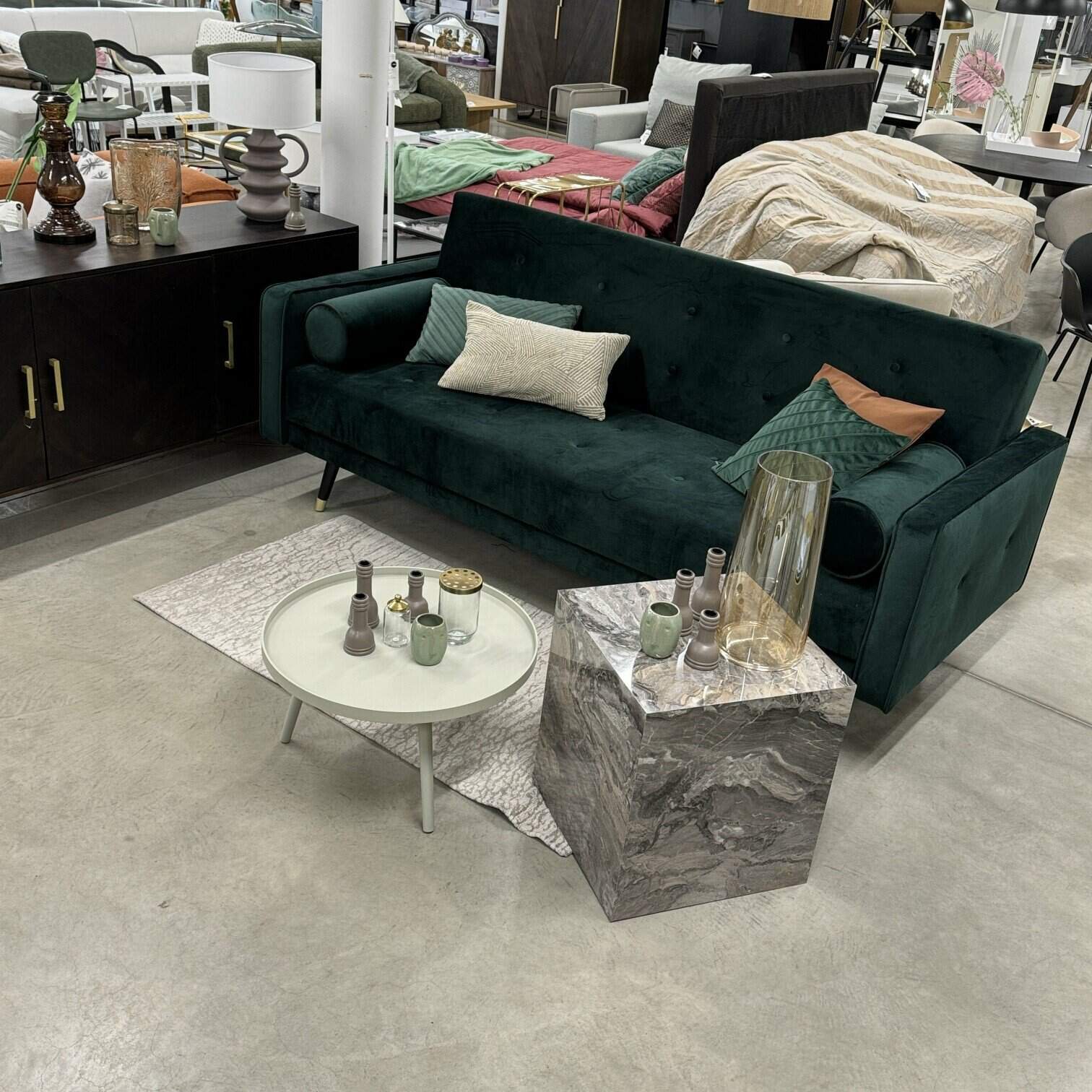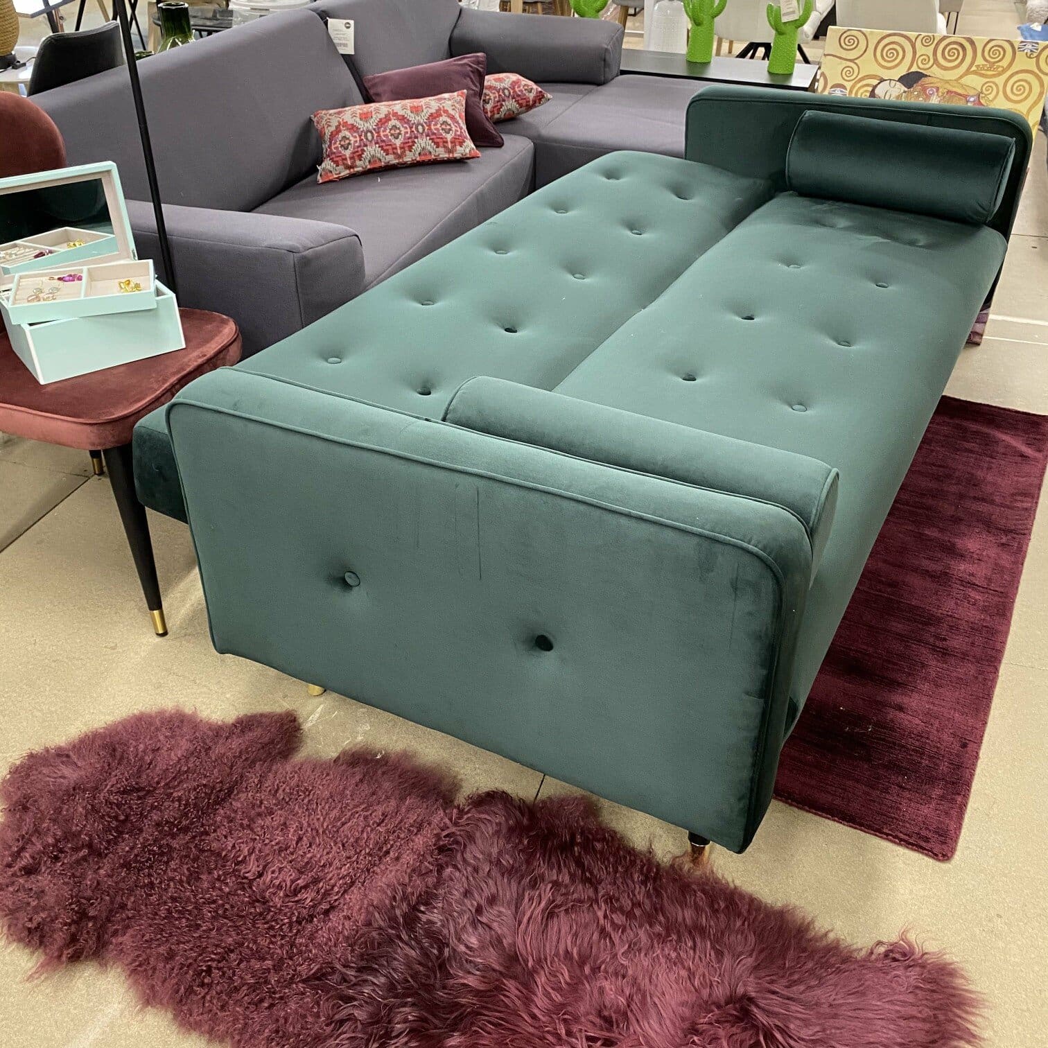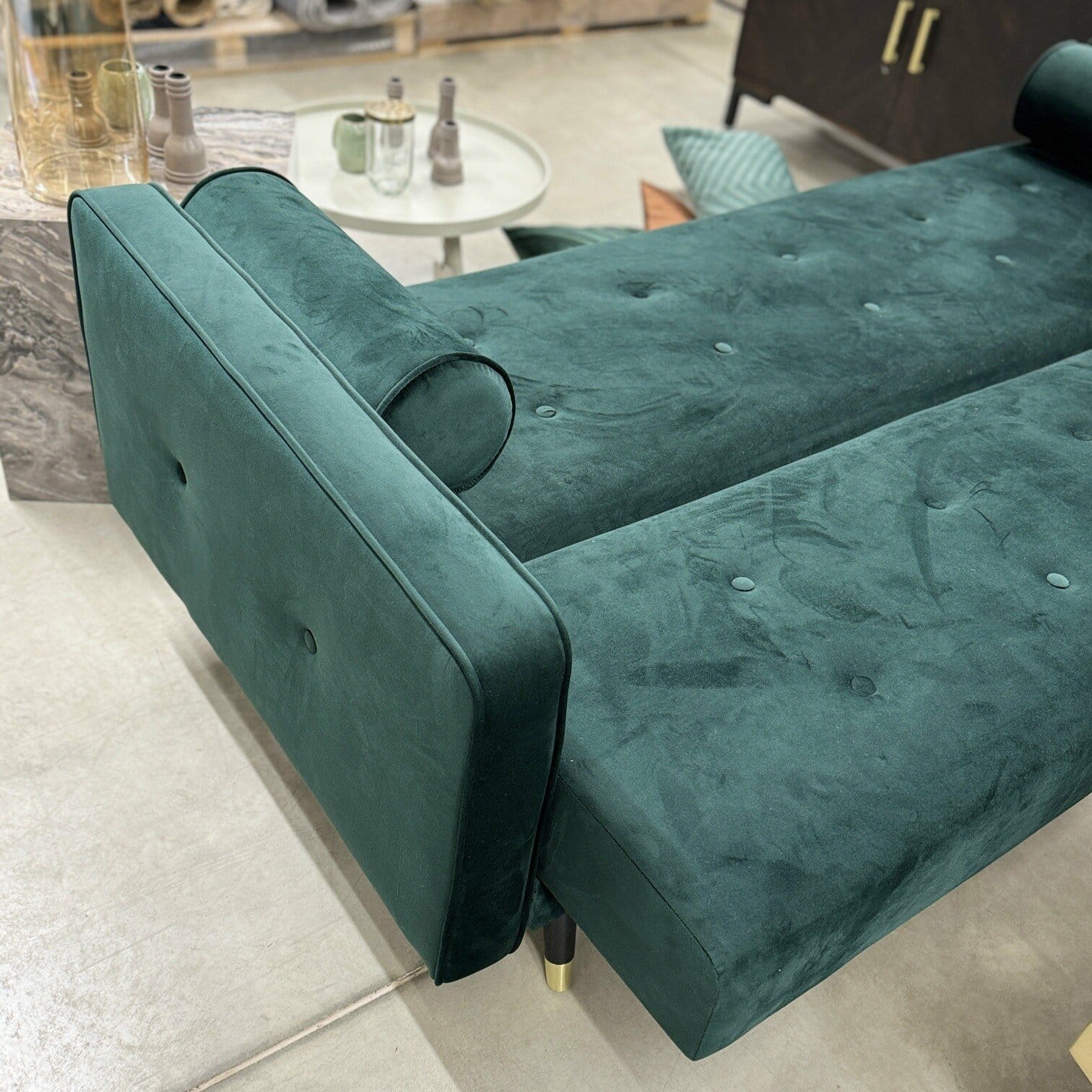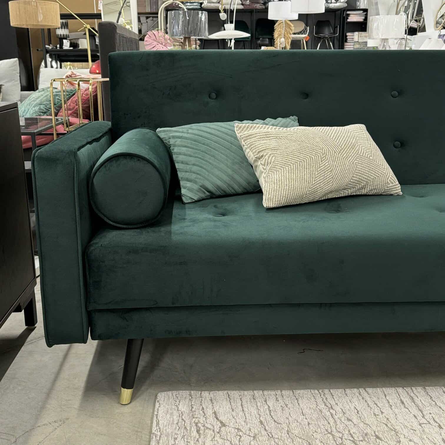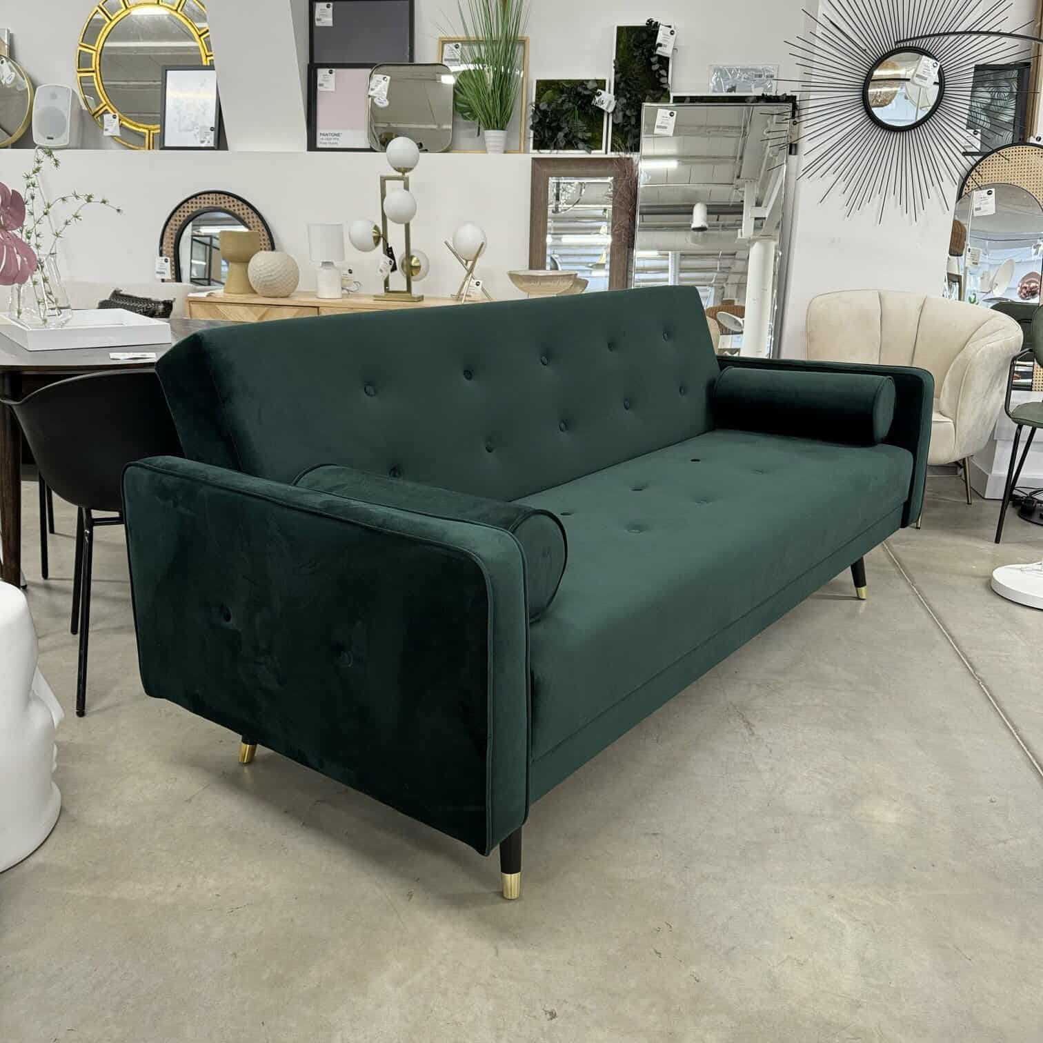 Dīvāns tumši zaļā krāsā telpu padarīs bagātīgu, kalpos kā aci piesaistošs elements. Kā liels pluss, ka šis dīvāns ir transfomējams kā guļamdīvāns.