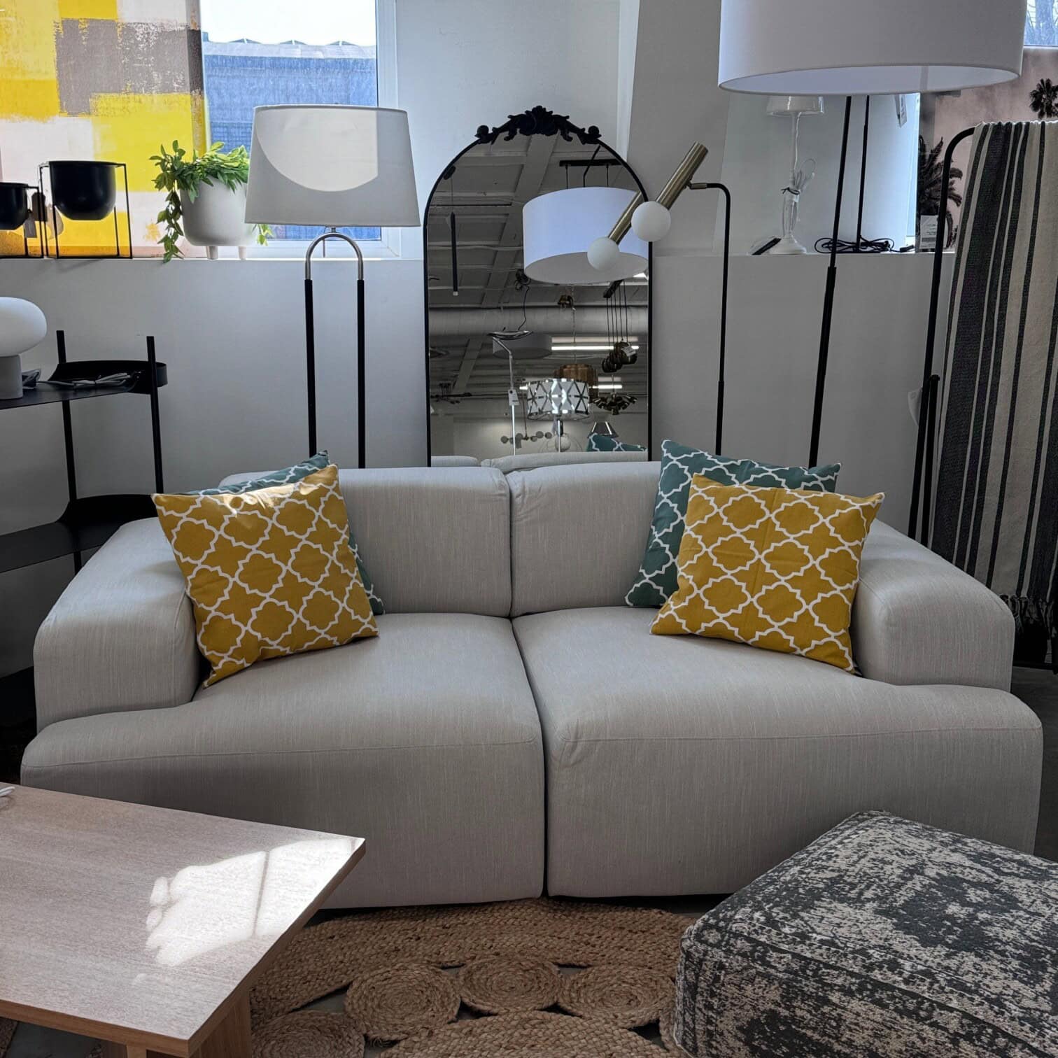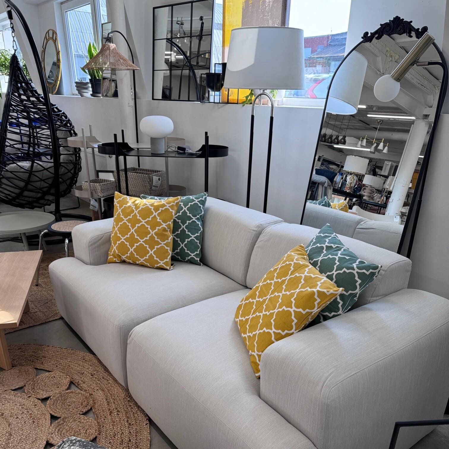 Atpūtas telpām piemērots dīvāns Melva, kas sastāv no diviem moduļiem. Pateicoties platajiem roku balstiem un dziļajam sēdeklim, šeit varat lieliski atpūsties. Gaišās krāsas tapsējums atsvaidzinās jebkuras telpas interjeru.