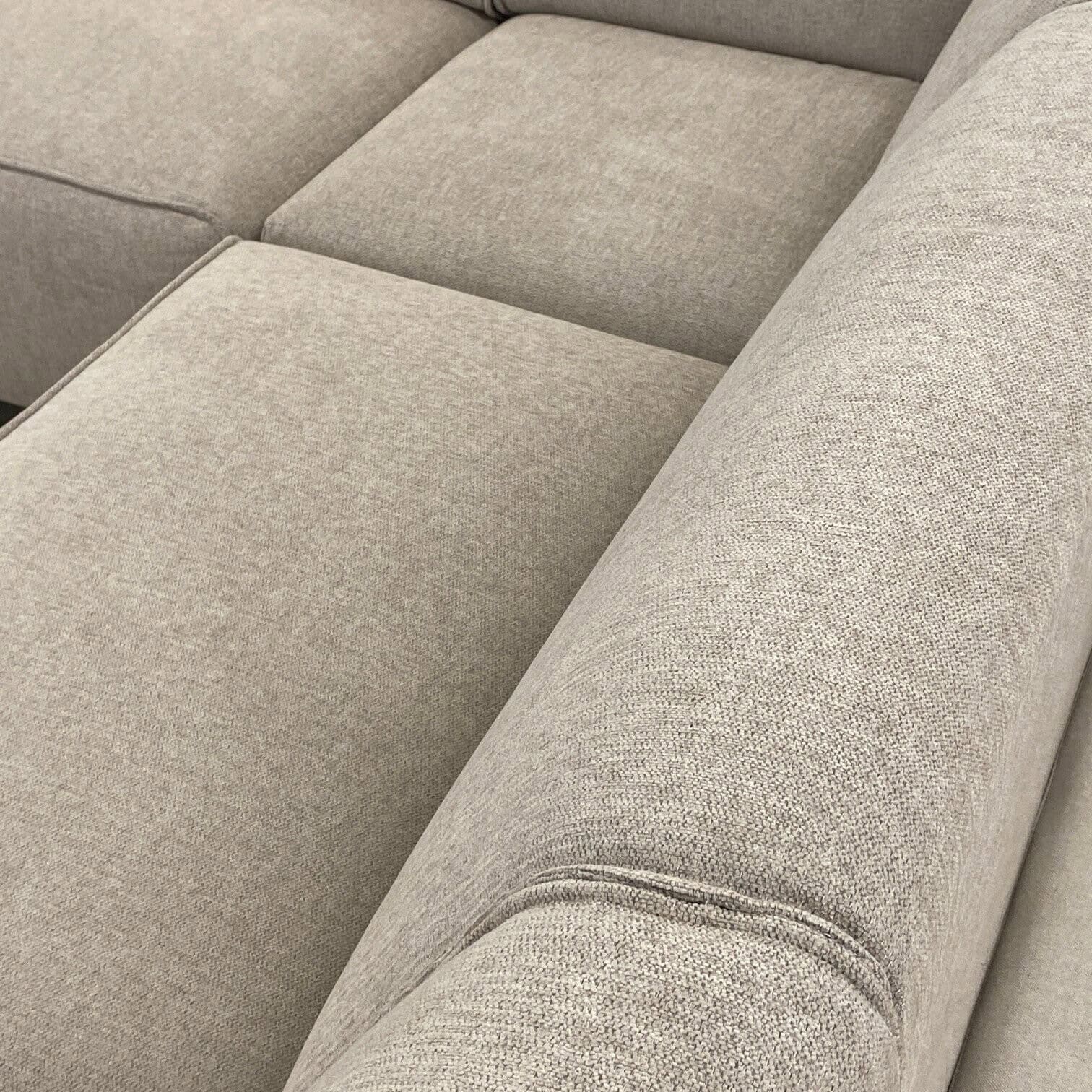 Dīvāns izceļas ar tīrām līnijām, zemu profilu un minimālistisku estētiku, kas viegli iekļaujas dažādos interjera stilos – no skandināvu līdz laikmetīgam. Neitrālais auduma tonis piešķir telpai gaišumu un vizuālu vieglumu, vienlaikus saglabājot praktiskumu ikdienas lietošanā.
