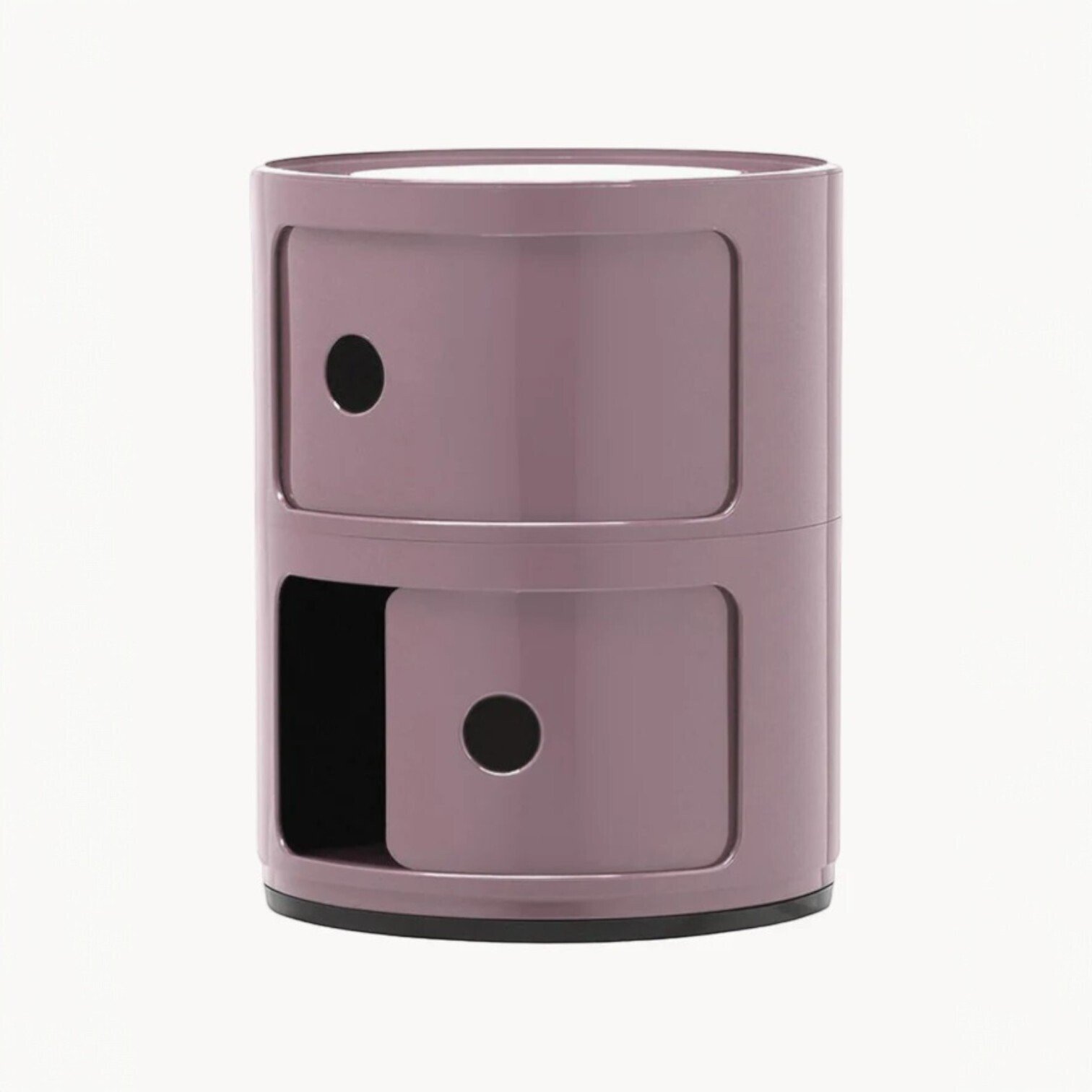 Kartell Componibili dizaina konteiners ir ikoniska un daudzpusīga uzglabāšanas mēbele, kas lieliski apvieno funkcionalitāti ar mūsdienīgu dizainu. Tā kompaktais, cilindriskas formas korpuss ar diviem bīdāmiem nodalījumiem ļauj ērti uzglabāt dažādus ikdienā nepieciešamus priekšmetus, vienlaikus saglabājot telpu vizuāli sakārtotu.