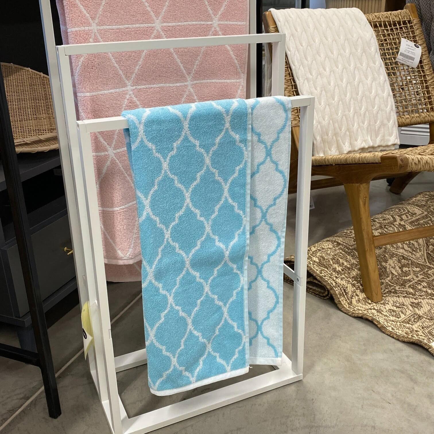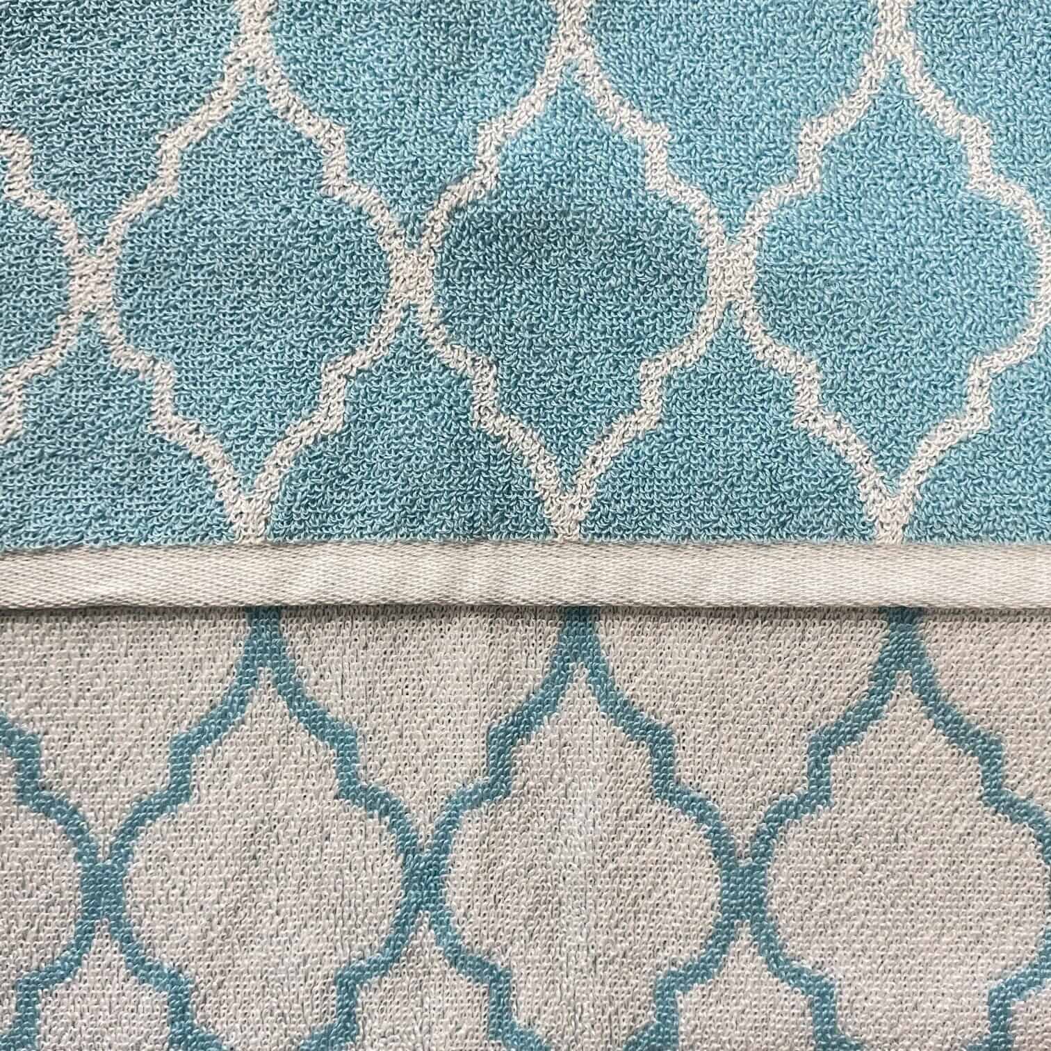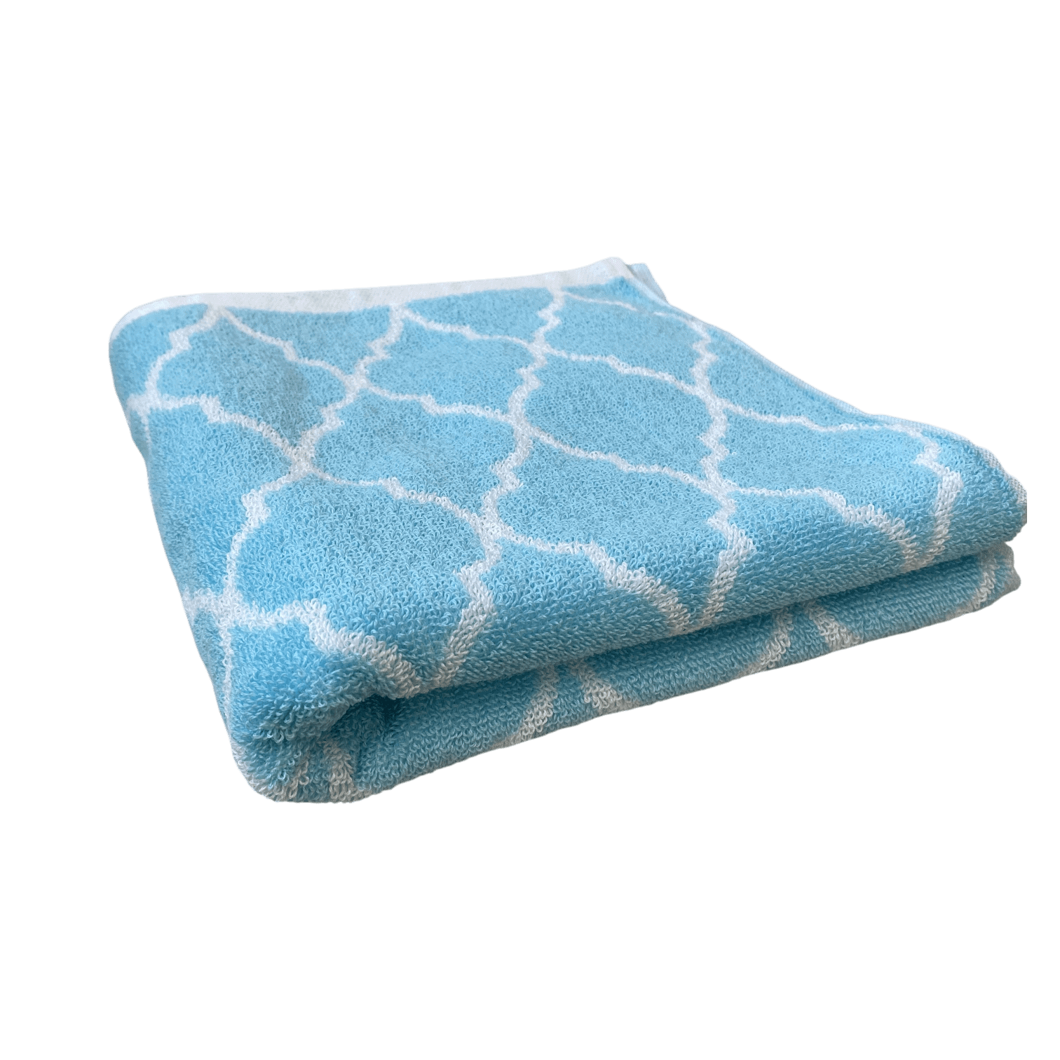 Mīksts un patīkams kokvilnas dvielis ar elegantu ģeometrisku rakstu gaiši zilā un baltā tonī. Dvielim ir divpusējs dizains – raksts redzams gan priekšpusē, gan aizmugurē, kas piešķir tam koptu un kvalitatīvu izskatu. Labi uzsūc mitrumu un ir piemērots ikdienas lietošanai vannasistabā, pirtī vai pludmalē.