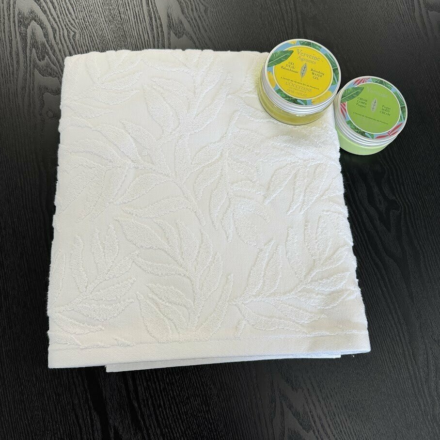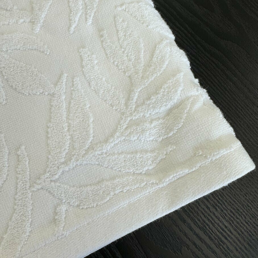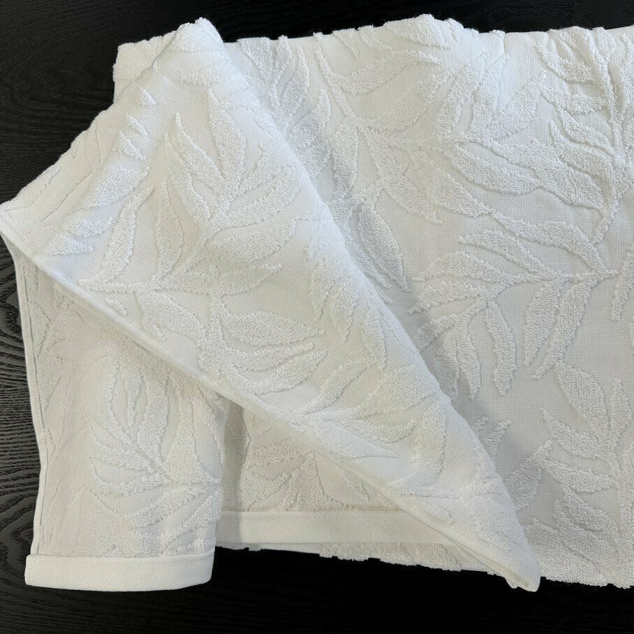Vannas dvielis ar lapu rakstu un cilpu pakāršanai.