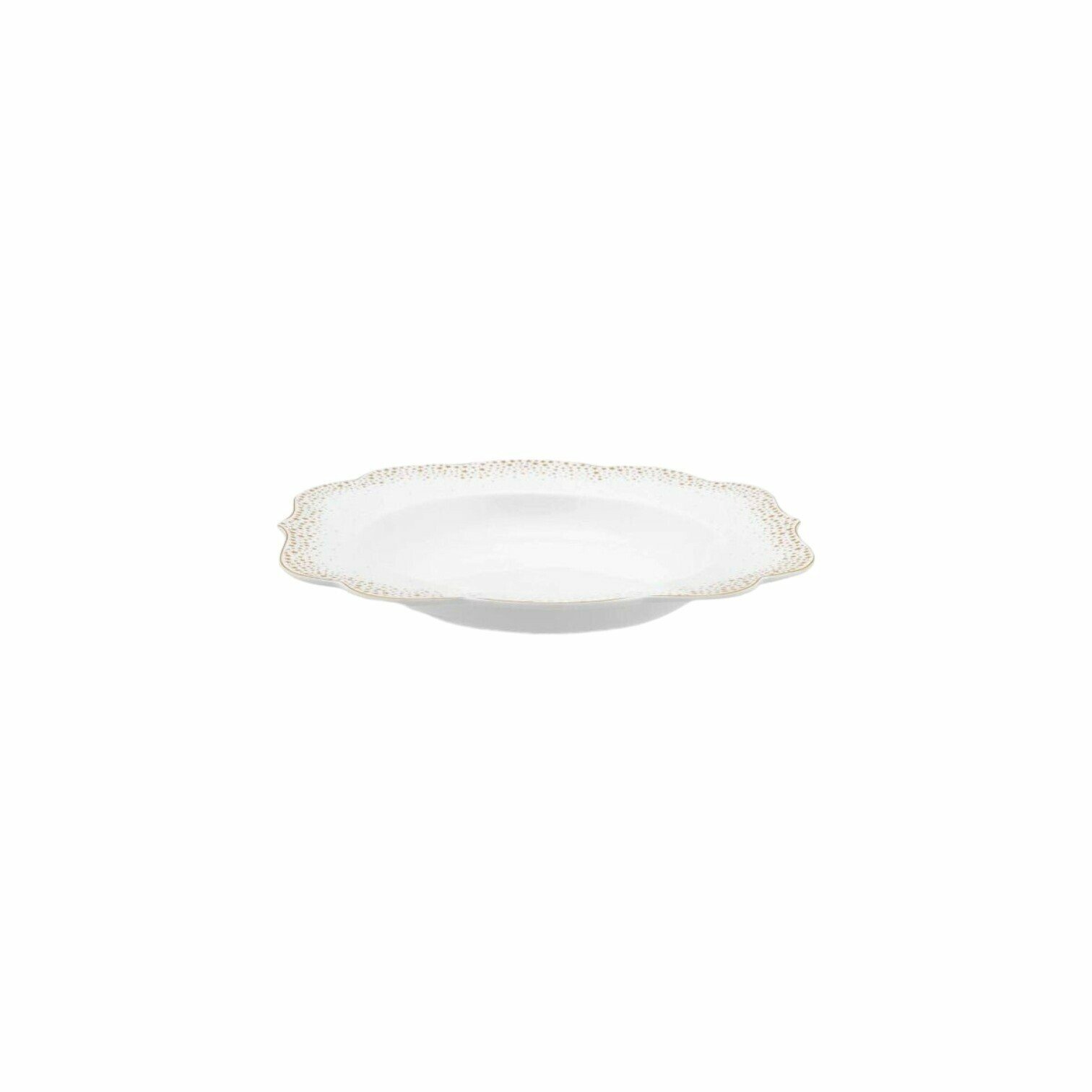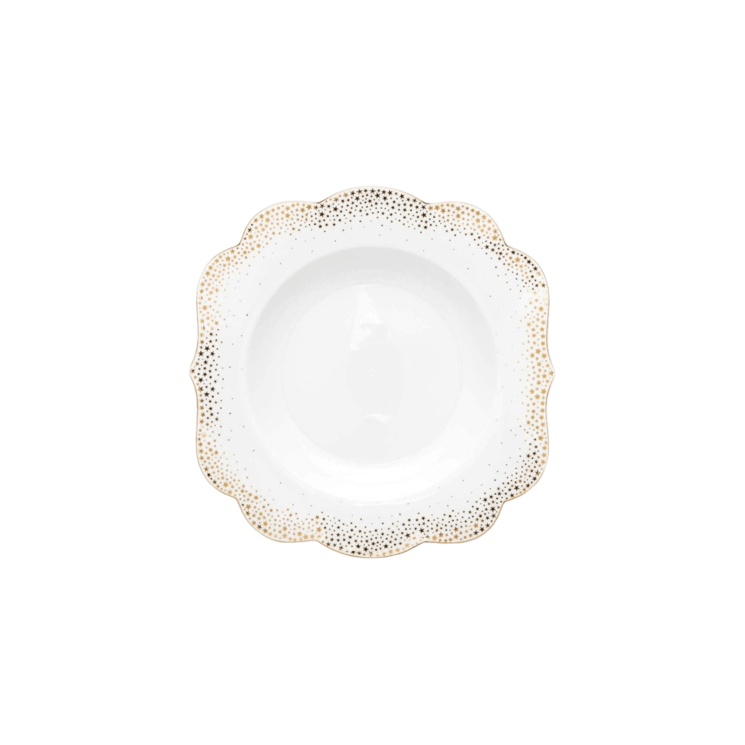 Radiet maģiskus mirkļus pie galda ar Royal Winter White kolekciju. Dziļo šķīvi rotā vairāku izmēru zelta zvaigznes, visapkārt šķīvim, un zelta maliņa