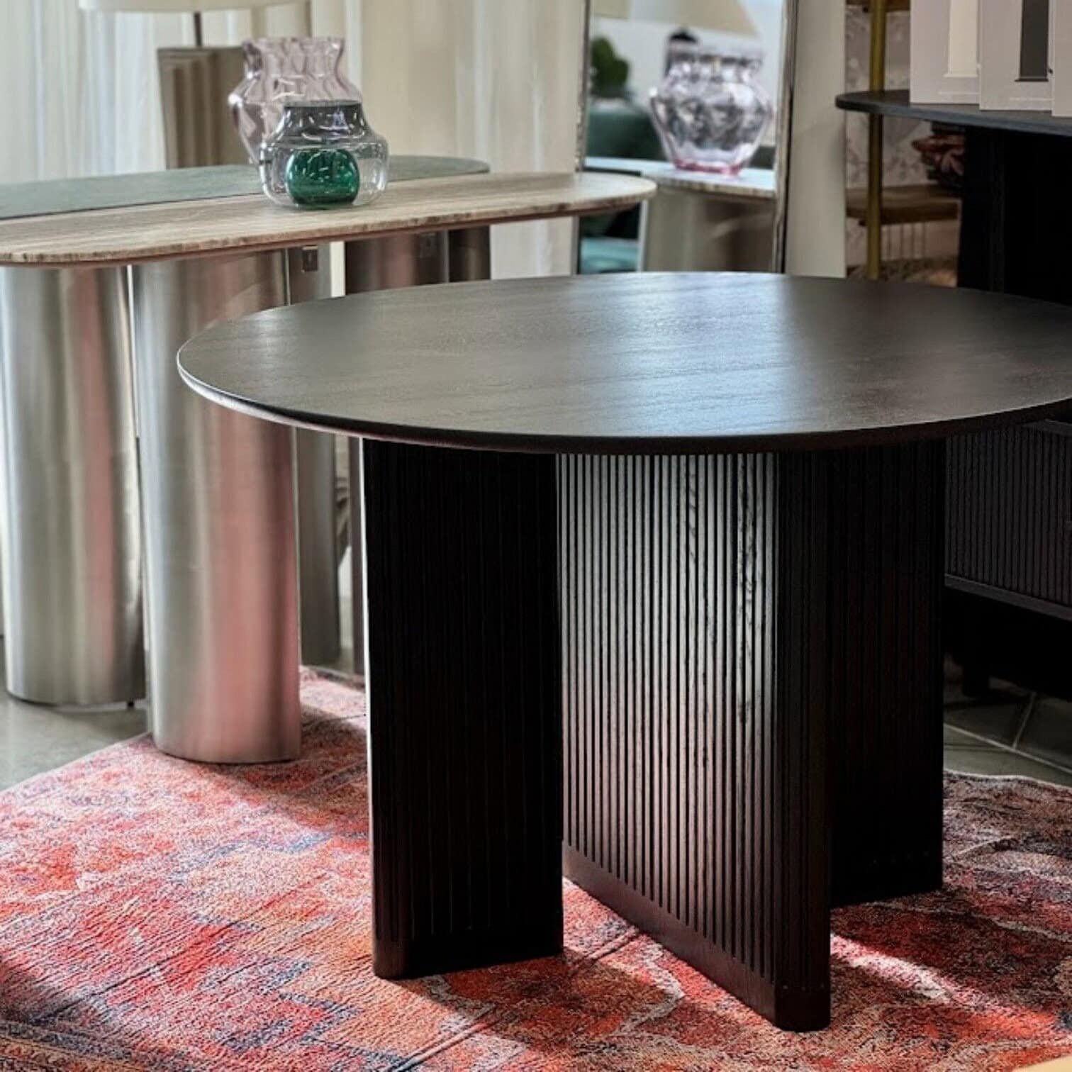 Ēdamgalds Jolka apvieno mūsdienīgu dizainu ar dabas materiālu siltumu. Tā apaļā forma rada mājīgu atmosfēru un veicina sarunas pie galda, kas ērti piemērots līdz četriem cilvēkiem. Galds ar rievotu tekstūru un elegantajām līnijām piešķir tam raksturu un izsmalcinātību, savukārt matētā melnā krāsa piešķir modernu un harmonisku akcentu jebkurā interjerā.
