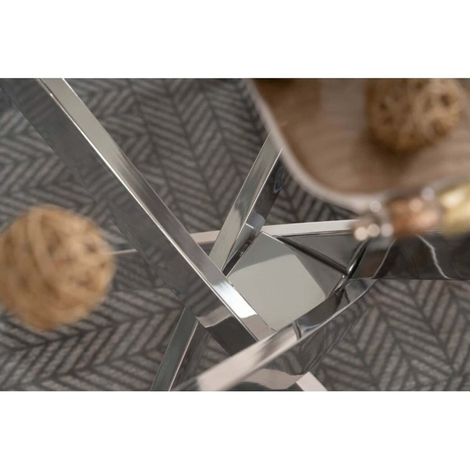 Stabilās metāla kājas sudraba tonī nodrošina drošu konstrukciju un piešķir galdam modernu, nedaudz industriālu raksturu. Taisnās līnijas un lakoniskais dizains ļauj šo galdu viegli saskaņot ar dažādu stilu krēsliem – no minimālisma līdz elegantam modernajam interjeram.