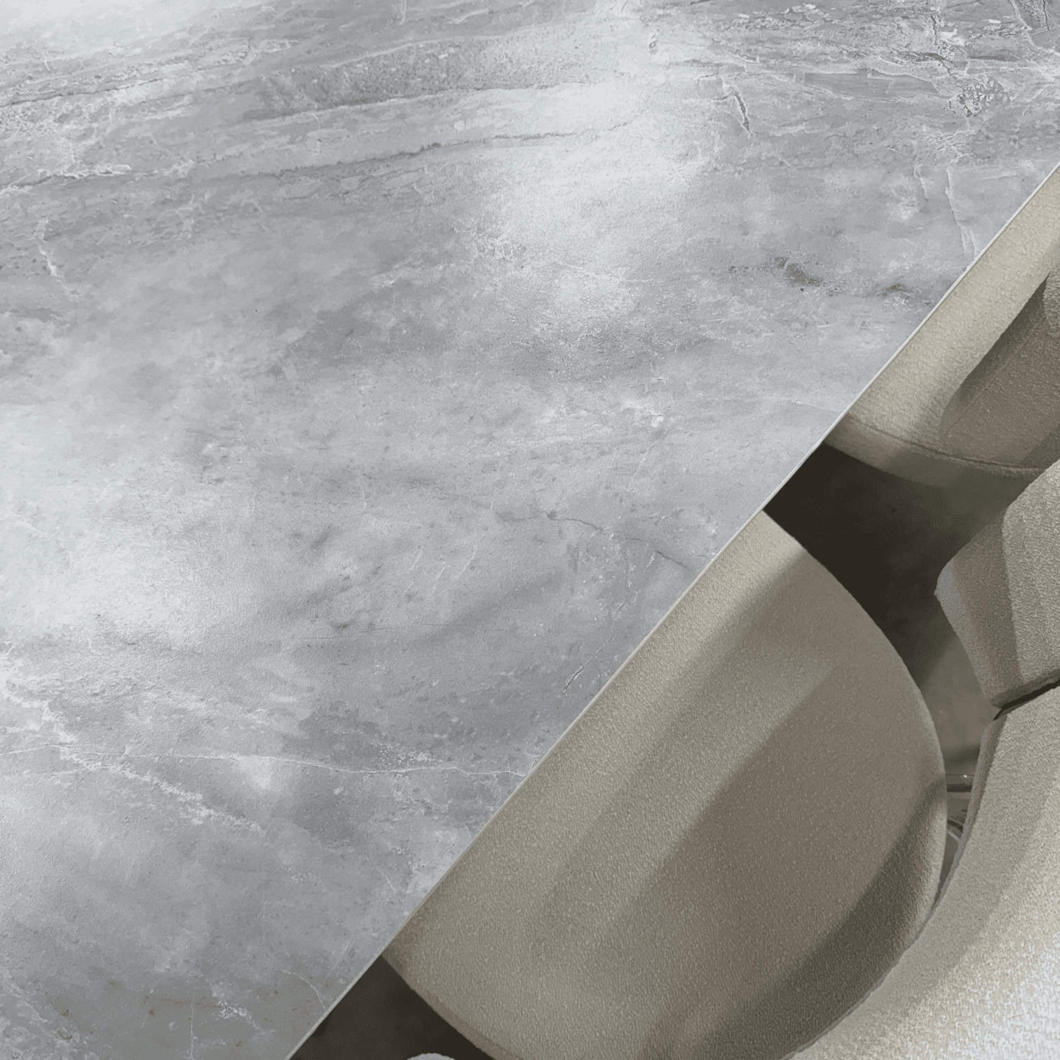 Augstas kvalitātes materiāli: Galda virsma ir izgatavota no izturīgas keramikas, kas ir ne tikai vizuāli pievilcīga, bet arī viegli kopjama un noturīga pret skrāpējumiem un karstumu. Tā nodrošina ilgstošu skaistumu un funkcionalitāti.