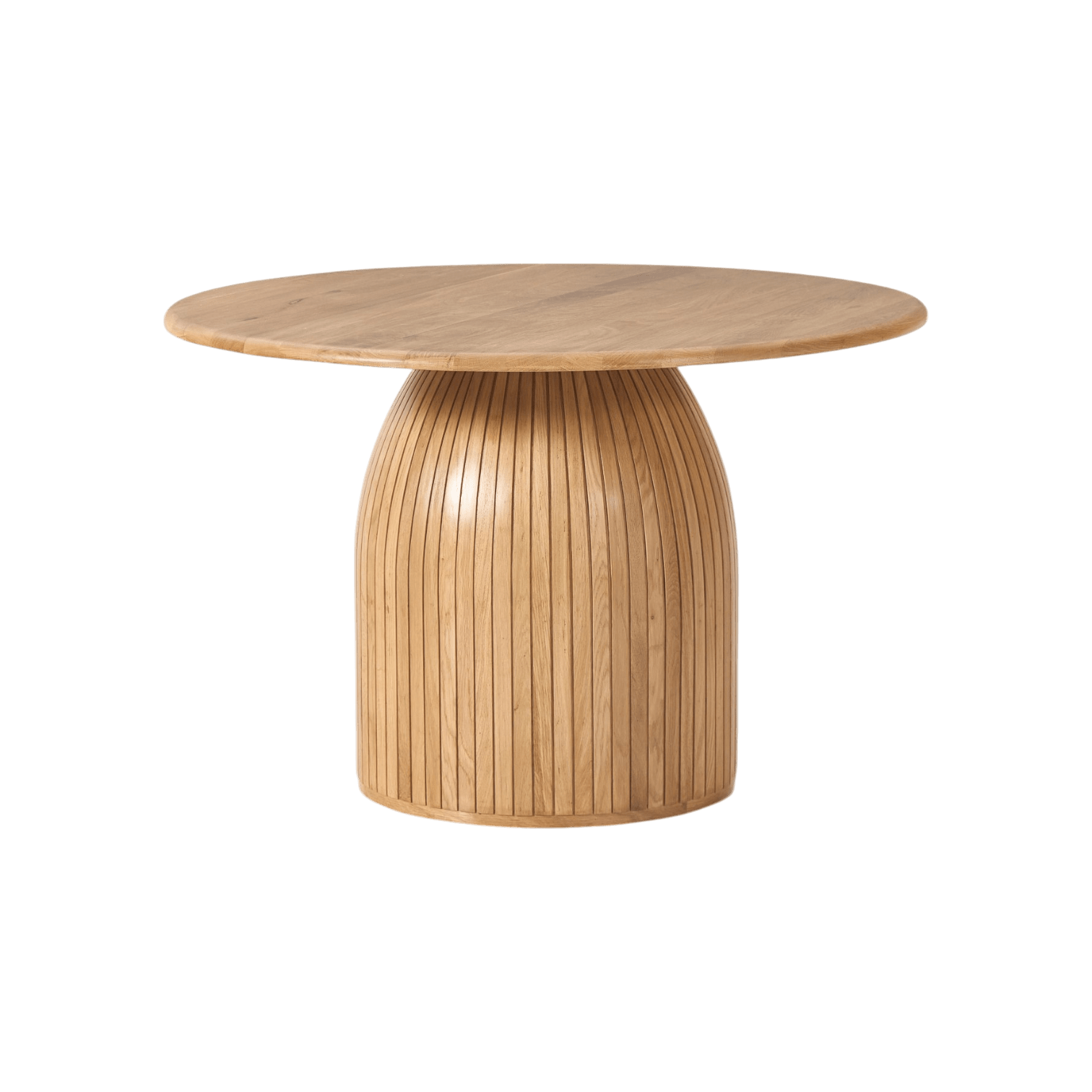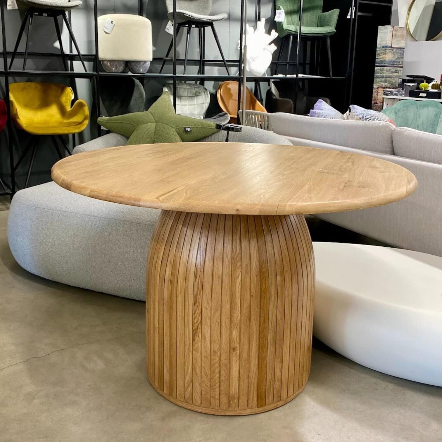 Pievienojiet savai ēdamzonai eleganci un siltumu ar šo stilīgo apaļo ēdamgaldu, kas izgatavots no augstas kvalitātes koka materiāliem. Tā modernā, organiskā forma un dabiskā koka tekstūra rada mājīgu atmosfēru un lieliski iederēsies gan skandināvu, gan mūsdienīgā interjerā.
