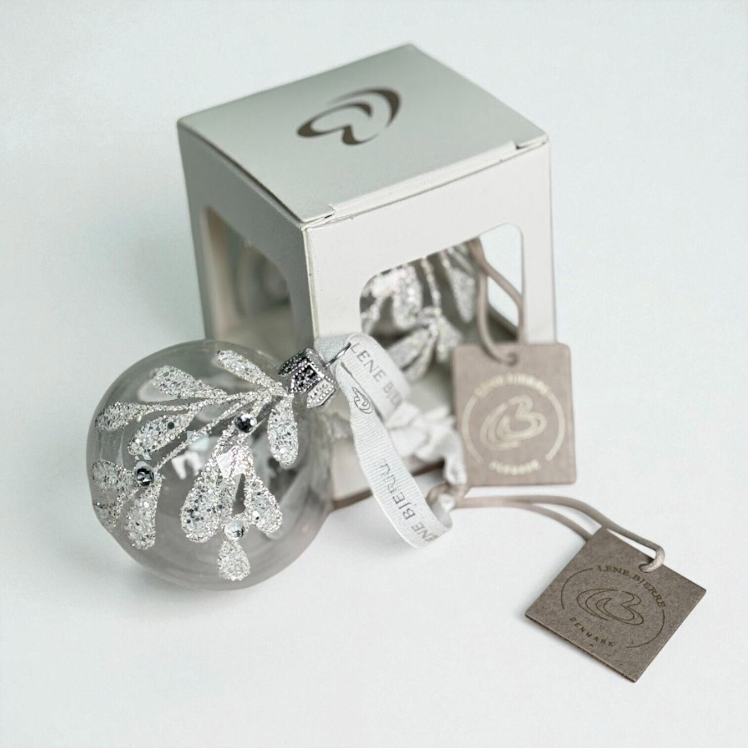 Eglīšu rotājumu komplekts Cadelia no zīmola Lene Bjerre izstaro eleganci un svētku greznumu. Komplektā ietilpst divas caurspīdīgas stikla bumbiņas, kas rotātas ar smalkiem sudraba ornamentiem un dekoratīvām lapiņām, piešķirot tām izsmalcinātu un mirdzošu izskatu.