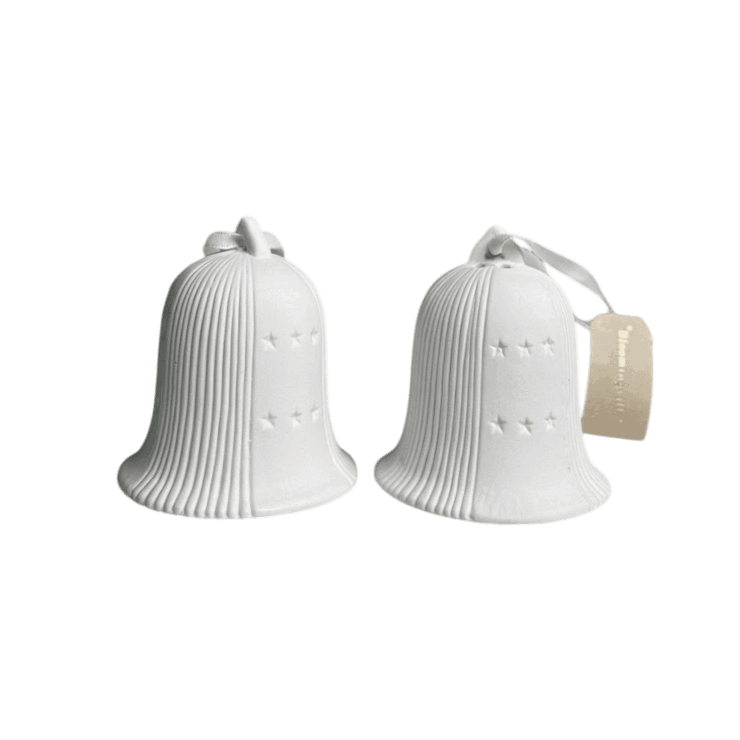 Eglīšu rotājumu komplekts Cloche piešķirs jūsu svētku dekorācijām klasisku un maigu šarmu. Komplektā ietilpst divi balti keramikas zvaniņi, kas iemieso tradicionālu Ziemassvētku noskaņu ar elegantu vienkāršību.