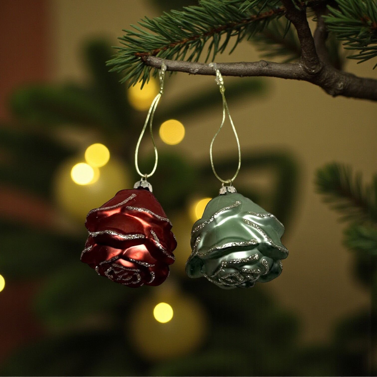 Piešķiriet savas svētku eglītes rotājumam romantisku un izsmalcinātu akcentu ar Dulce rotājumu komplektu. Komplektā iekļautas divas skaistas rozes – viena maigi rozā un viena elegantā zaļā tonī.