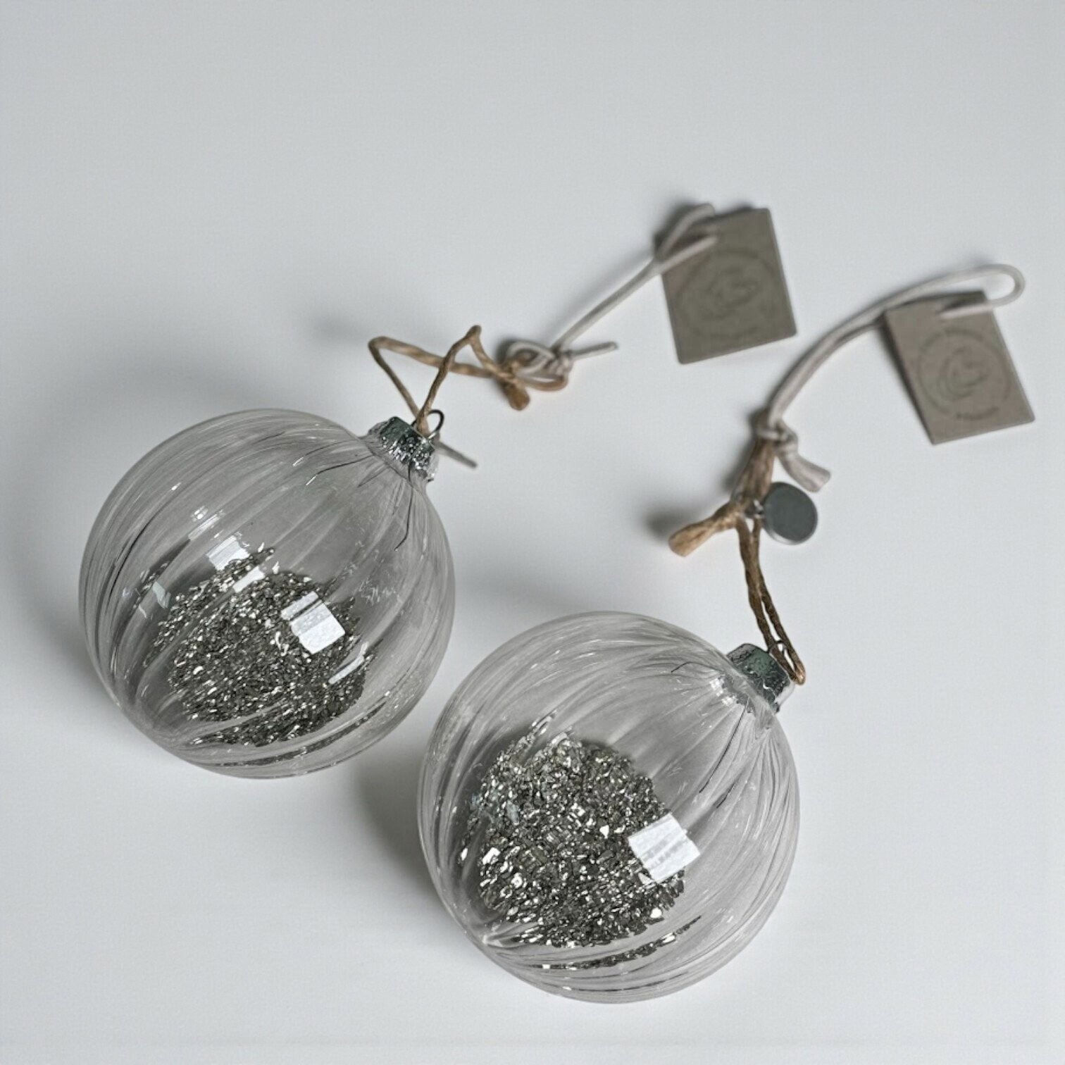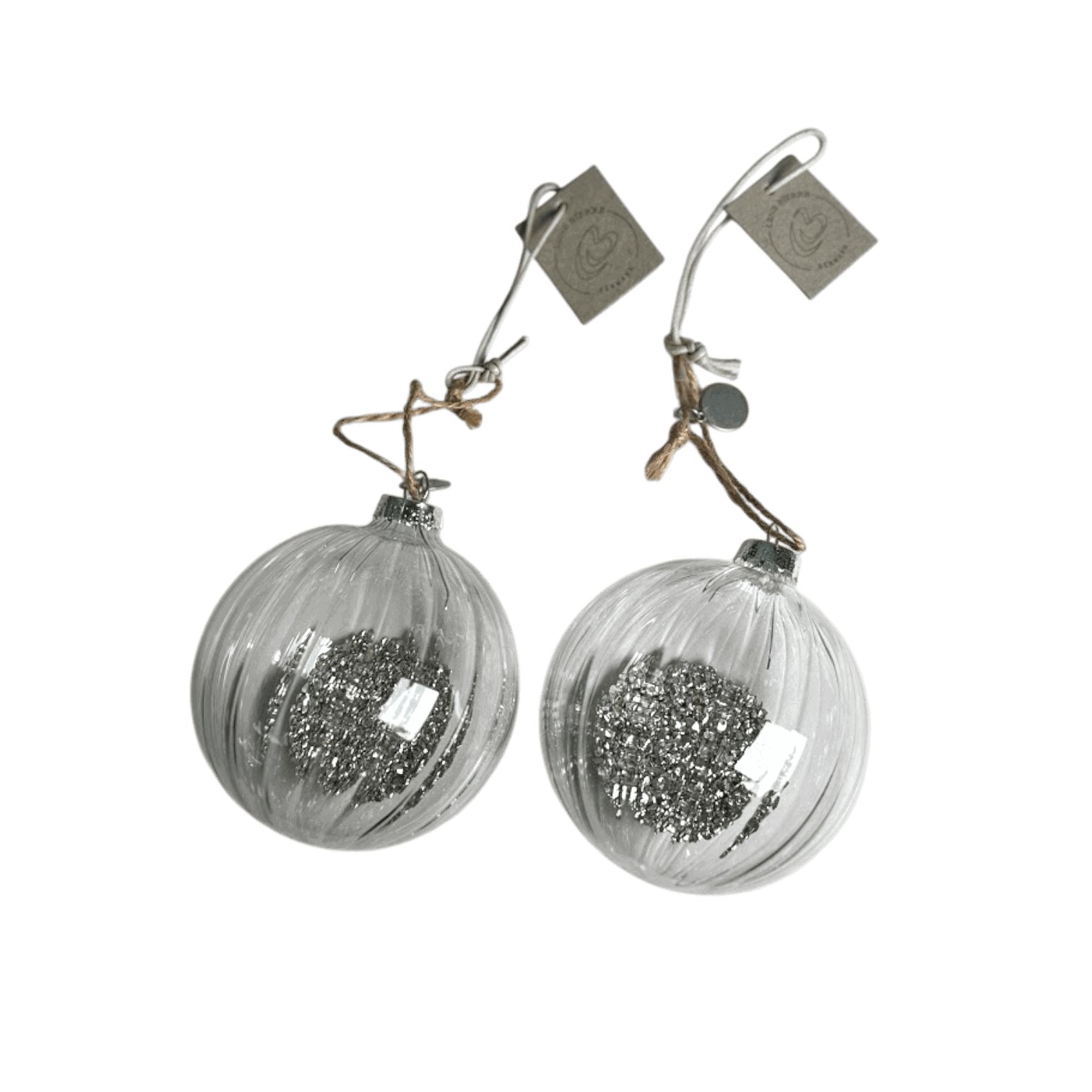 Eglīšu rotājumu komplekts Meryse, 2 gab. – caurspīdīgi ar sudraba skaidiņām