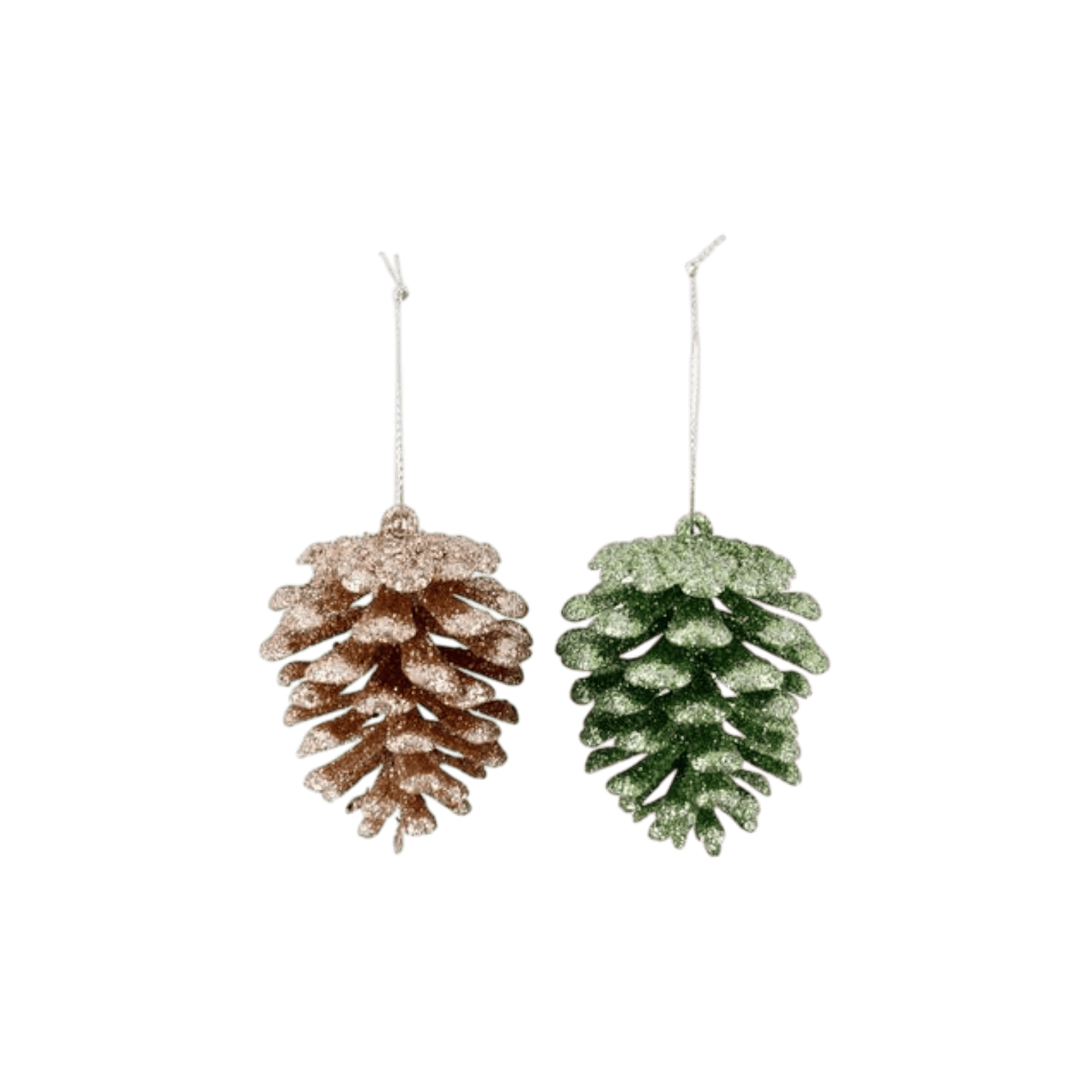 Rotājumi veidoti čiekura formā un pārklāti ar smalku, vienmērīgu spīdumu, kas skaisti atstaro gaismu un rada siltu, svinīgu noskaņu. Pieejami vairākās krāsās, tie lieliski sader savā starpā, ļaujot izveidot harmoniskas un bagātīgas kompozīcijas.