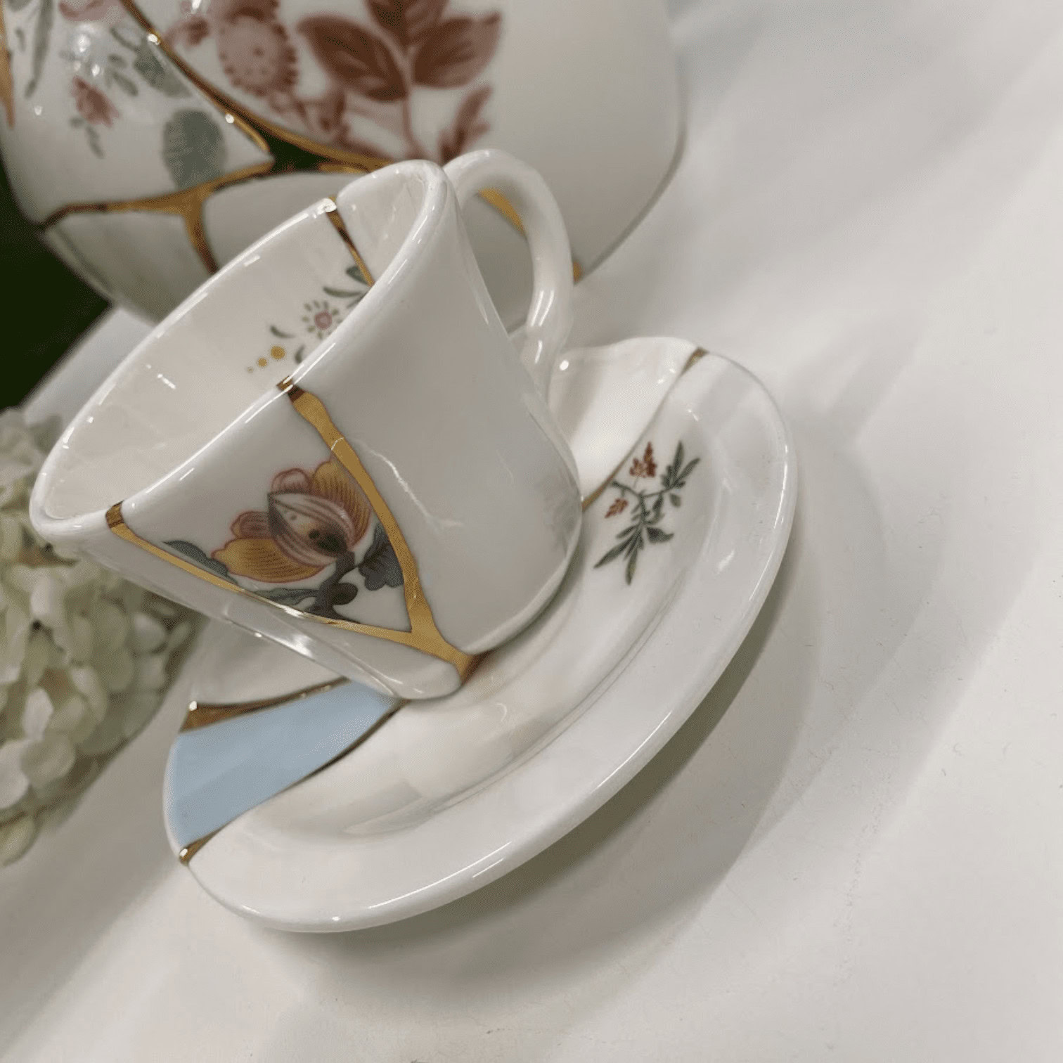 Kintsugi japāņu māksla iegūst mūsdienīgas formas. Smalkais porcelāns ir cildināts un bagātināts ar zelta fragmentiem, veidojot burvīgu un negaidītu kompozīciju galda piederumu kolekcijā.