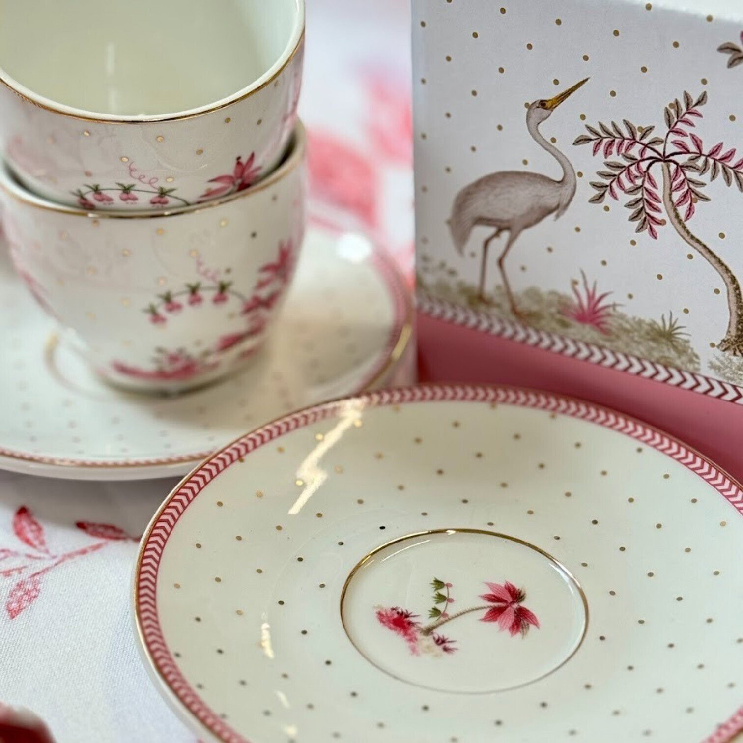 Espresso tases ar apakštasēm Jolie Dots Gold Pink ir daļa no burvīgās Jolie kolekcijas, kas apvieno eleganci un romantisku vieglumu. Šis īpašais komplekts ir rotāts ar smalkiem zelta punktiņiem, izsmalcinātiem ziedu un augu motīviem, kā arī balto gārni – detaļu, kas piešķir dizainam ne tikai vieglumu, bet arī izteiksmīgu raksturu.