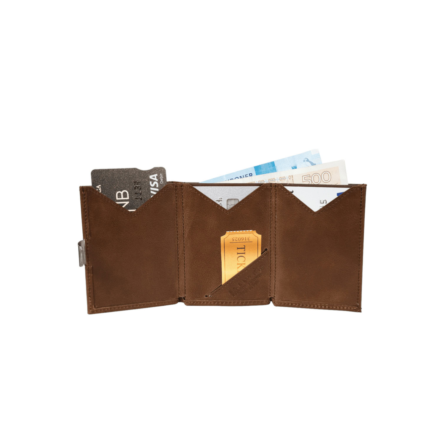 Ātra piekļuve/ 6 karšu kabatas/ Nodalījums rēķiniem/čekiem/ Nodalījums biļetēm/vizītkartēm/ Kompakts un plāns /Kvalitatīva āda/ Nerūsējošais tērauds/ RFID bloķēšanas tehnoloģija/ Norvēģu dizains