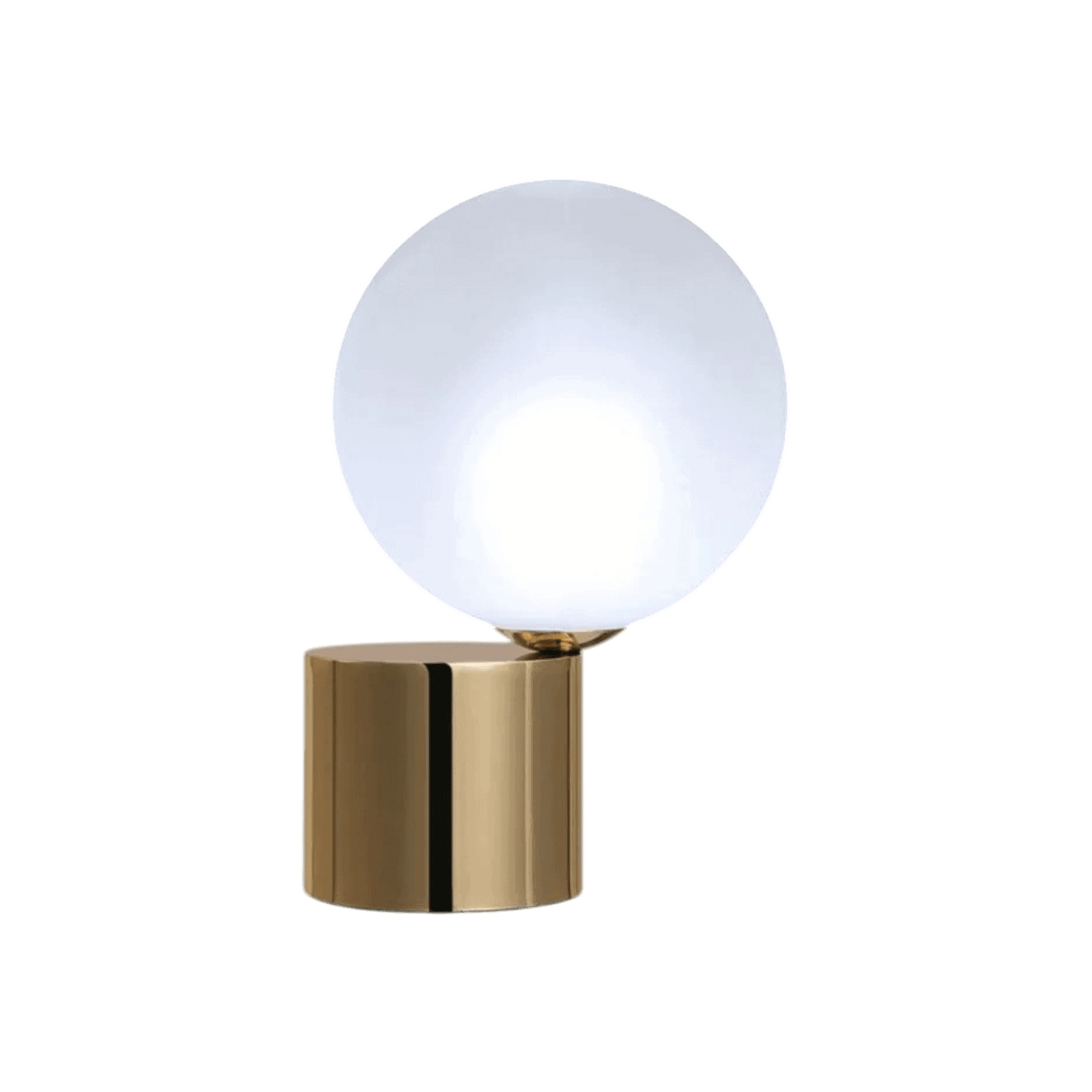 Galda lampa Anas izceļas ar modernu un elegantu dizainu, kas ienes interjerā gan siltu apgaismojumu, gan estētisku akcentu. Apvienojot matētu stikla kupolu ar izsmalcināti spīdīgu zelta pamatni, šī lampa rada mūsdienīgu luksusa sajūtu.