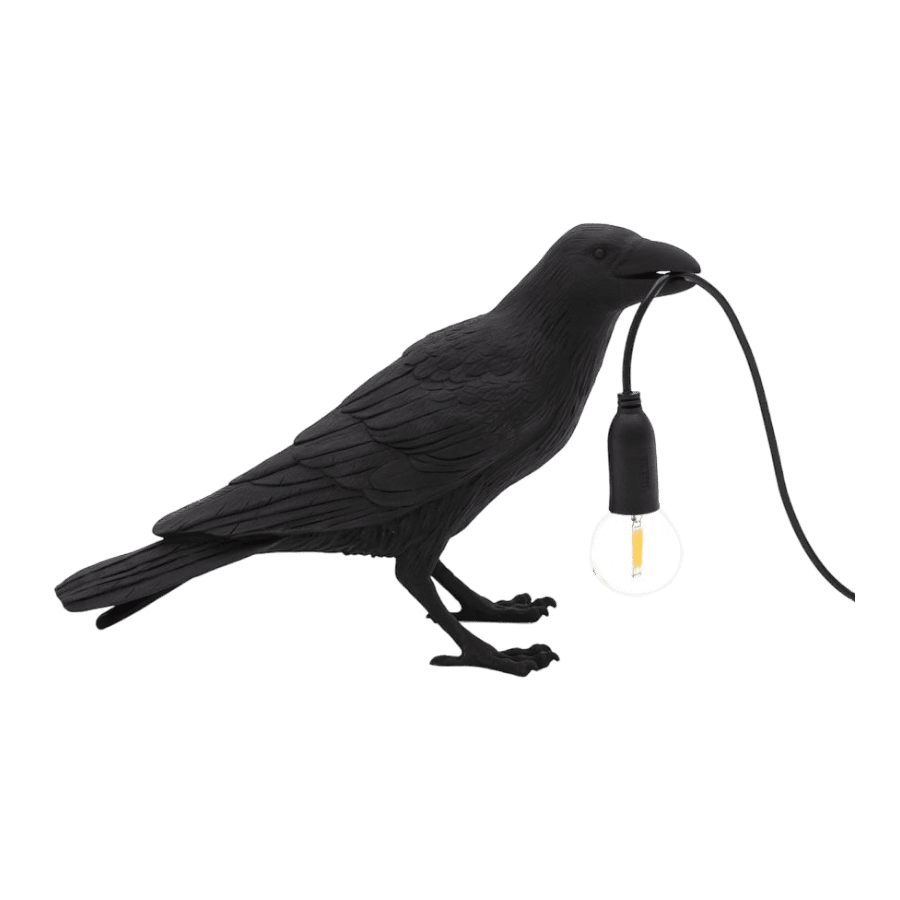 Gluži kā pasakā, trīs gudri kraukļi spīdina gaismu, lai jūs varētu atrast savu ceļu. Šie laipnie un amizantie putni ir izgatavoti no polisveķiem divās krāsu variācijās, ko Marcantonio ir veidojis trīs dažādās pozās. Izgaismojiet savu istabu ar šo spalvaino draugu palīdzību.