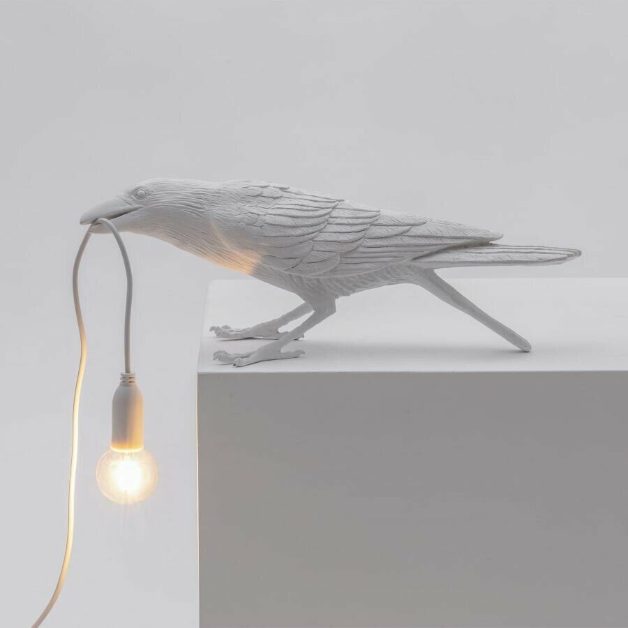 Gluži kā pasakā, trīs gudri kraukļi spīdina gaismu, lai jūs varētu atrast savu ceļu. Šie laipnie un amizantie putni ir izgatavoti no polisveķiem divās krāsu variācijās, ko Marcantonio ir veidojis trīs dažādās pozās. Izgaismojiet savu istabu ar šo spalvaino draugu palīdzību.