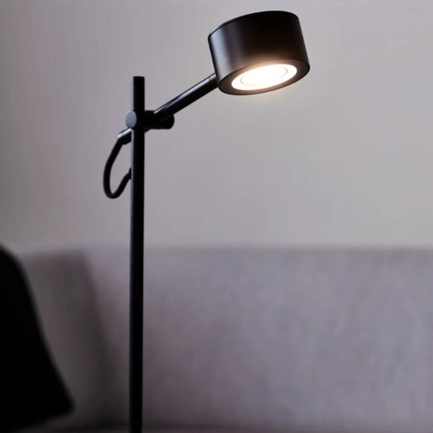 Iebūvētais LED gaismas avots nodrošina energoefektīvu, vienmērīgu apgaismojumu ar ilgu kalpošanas laiku, samazinot elektroenerģijas patēriņu. Stabilā pamatne garantē drošu novietojumu uz galda, savukārt lakoniskais melnais tonis piešķir lampai modernu un elegantu izskatu.