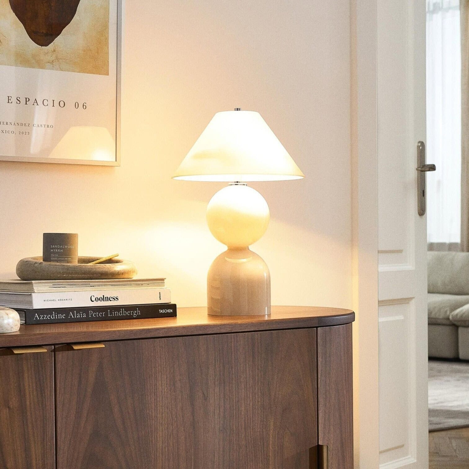 Galda lampa Danielle ir elegants un mūsdienīgs aksesuārs, kas piešķirs jūsu interjeram gan vizuālu vieglumu, gan patīkamu, atmosfērisku apgaismojumu. Tās glancētais bēšais tonis un stikla forma piešķir lampai īpašu izsmalcinātību, padarot to par stilīgu akcentu gan uz naktsgaldiņa, gan darba galda, gan konsoles.