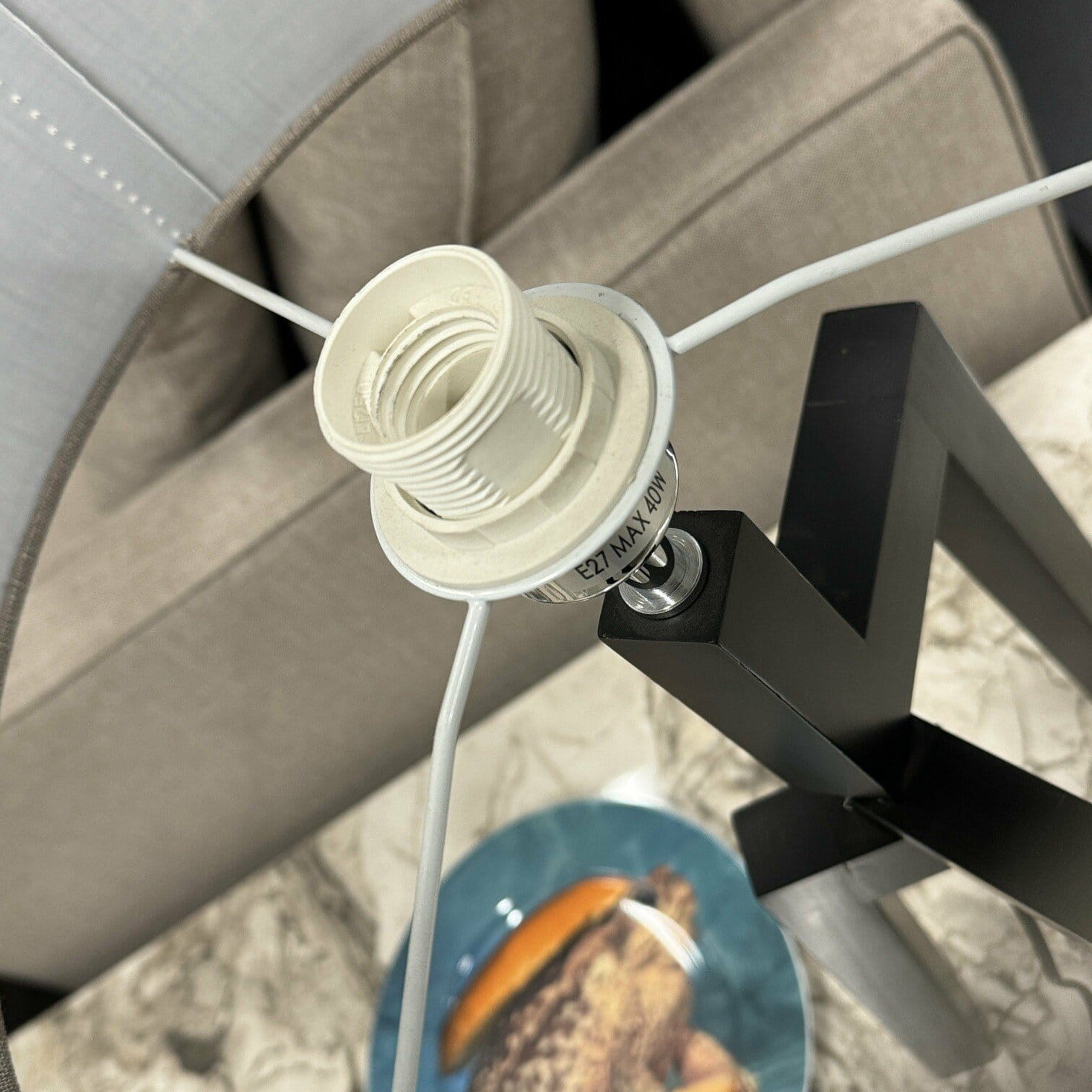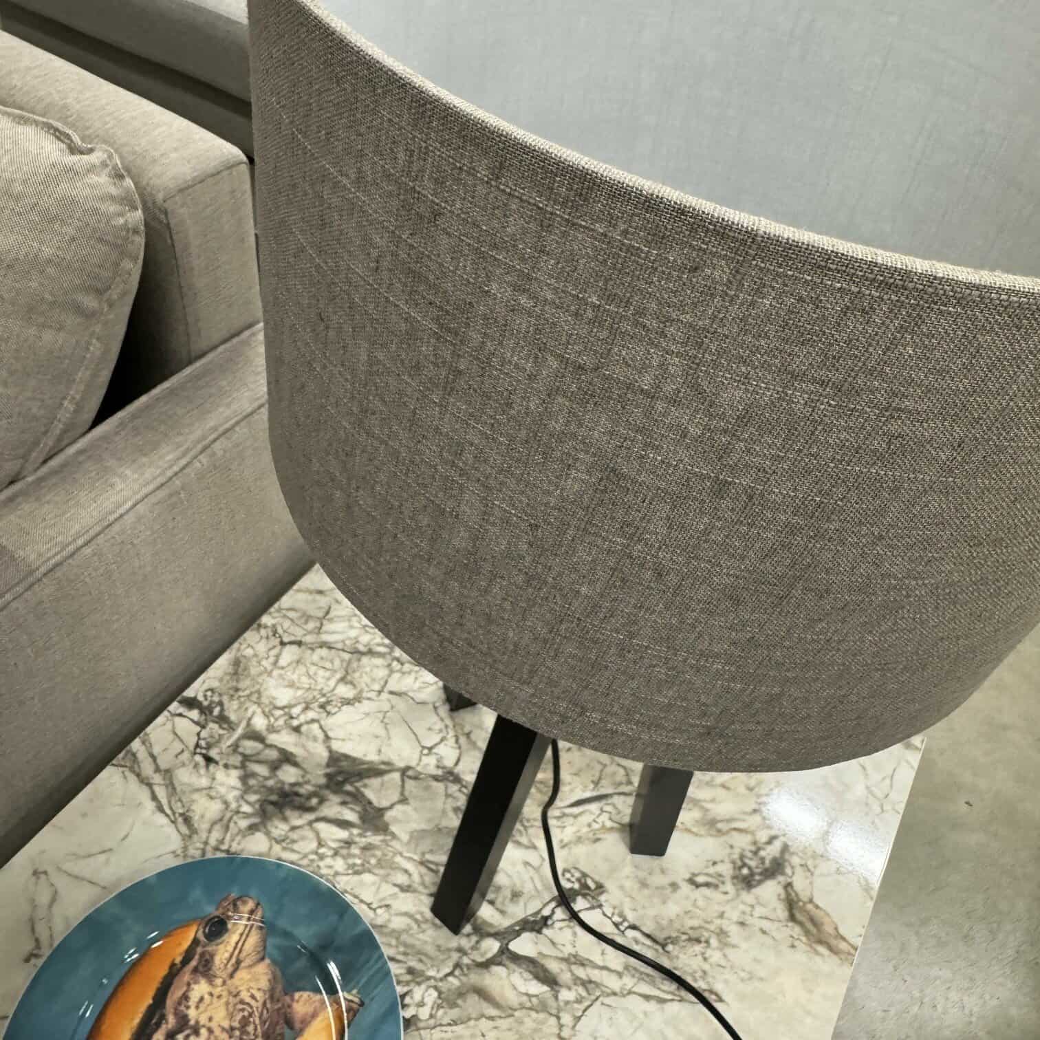 Skandināvu stila galda lampa ar linīgu lampas kupolu. Lakoniska dizaina, neitrālu krāsu salikums. Ar šo galda lampu jūs bagātināsiet savu dzīvojamās istabas, guļamistabas vai mājas biroja interjeru.