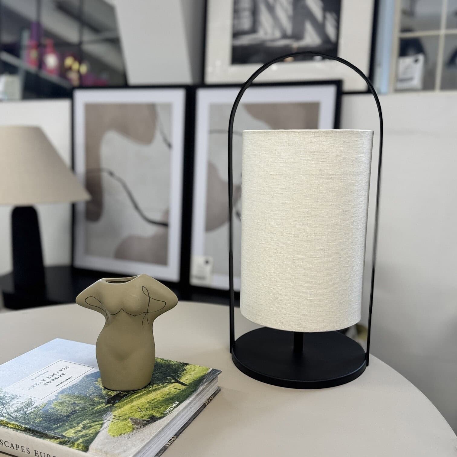 Baltais abažūrs un armatūras smalkās līnijas piešķir tai jauneklīgu, tīru izskatu. Lins izkliedē gaismu, piešķirot tai siltu mirdzumu. Šī galda lampa lieliski izskatās viesistabā, uz sienas skapīša vai pat guļamistabā.
