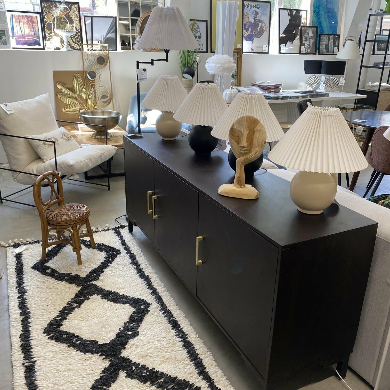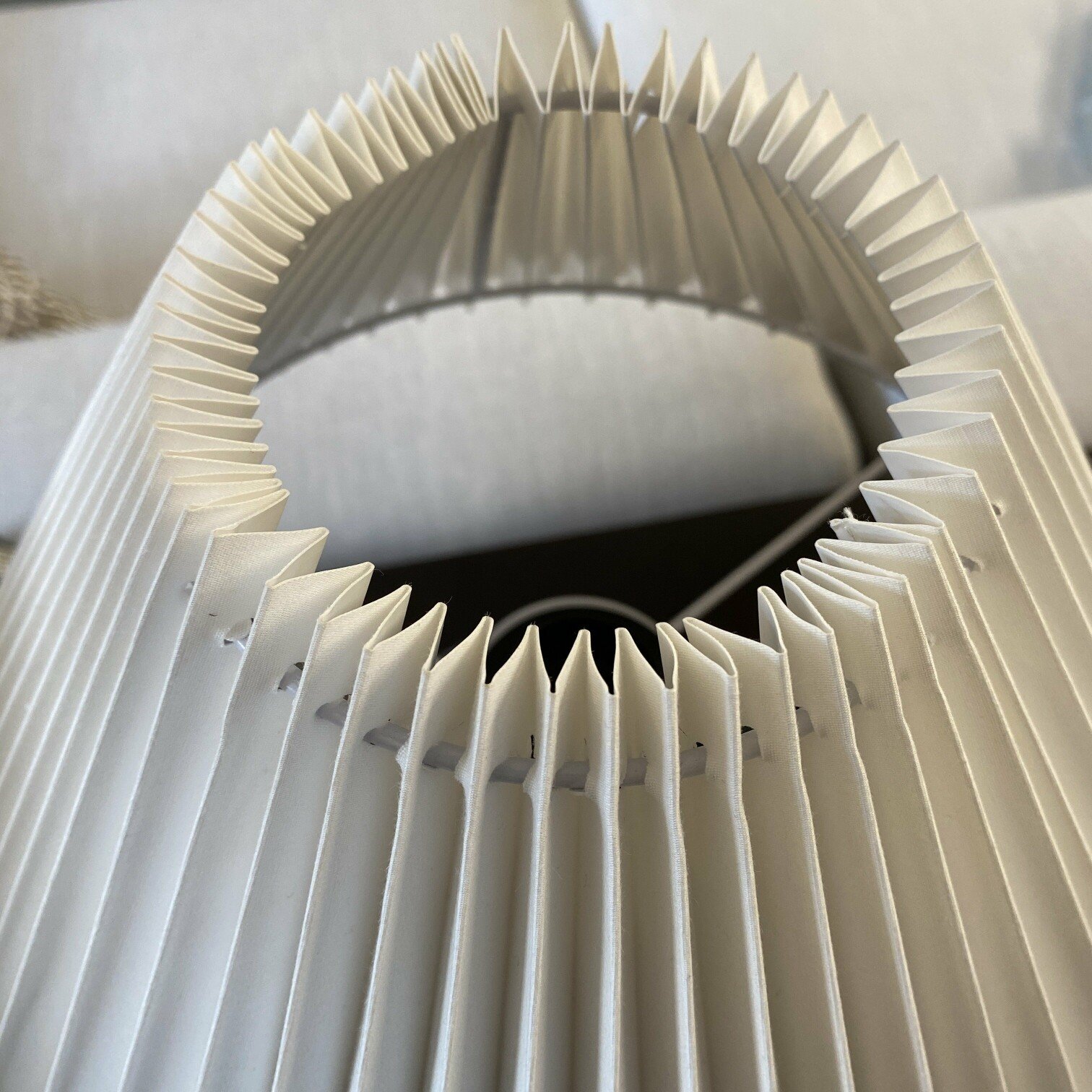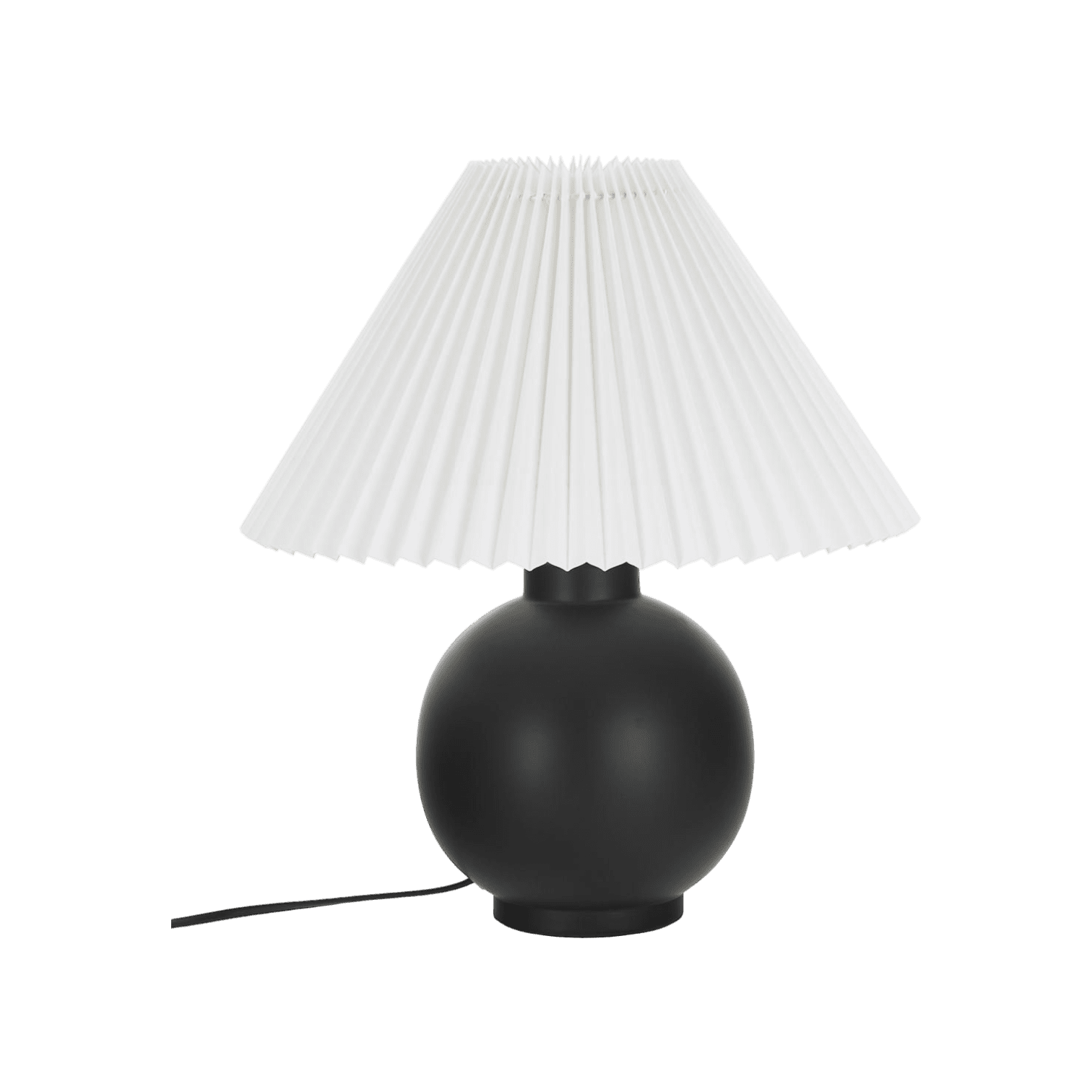 Galda lampa melnā krāsā no keramikas, ar rievotu auduma abažūru