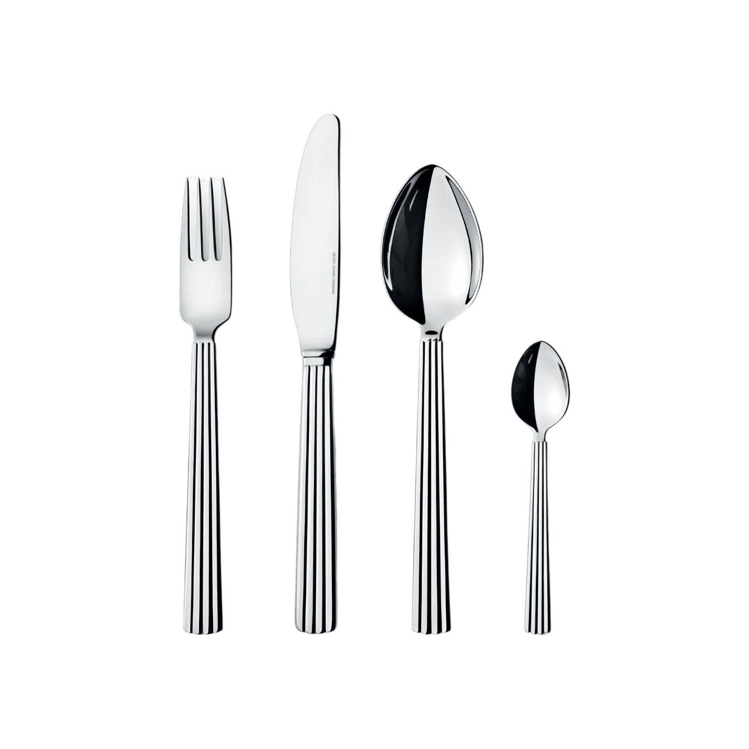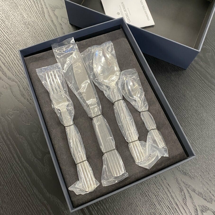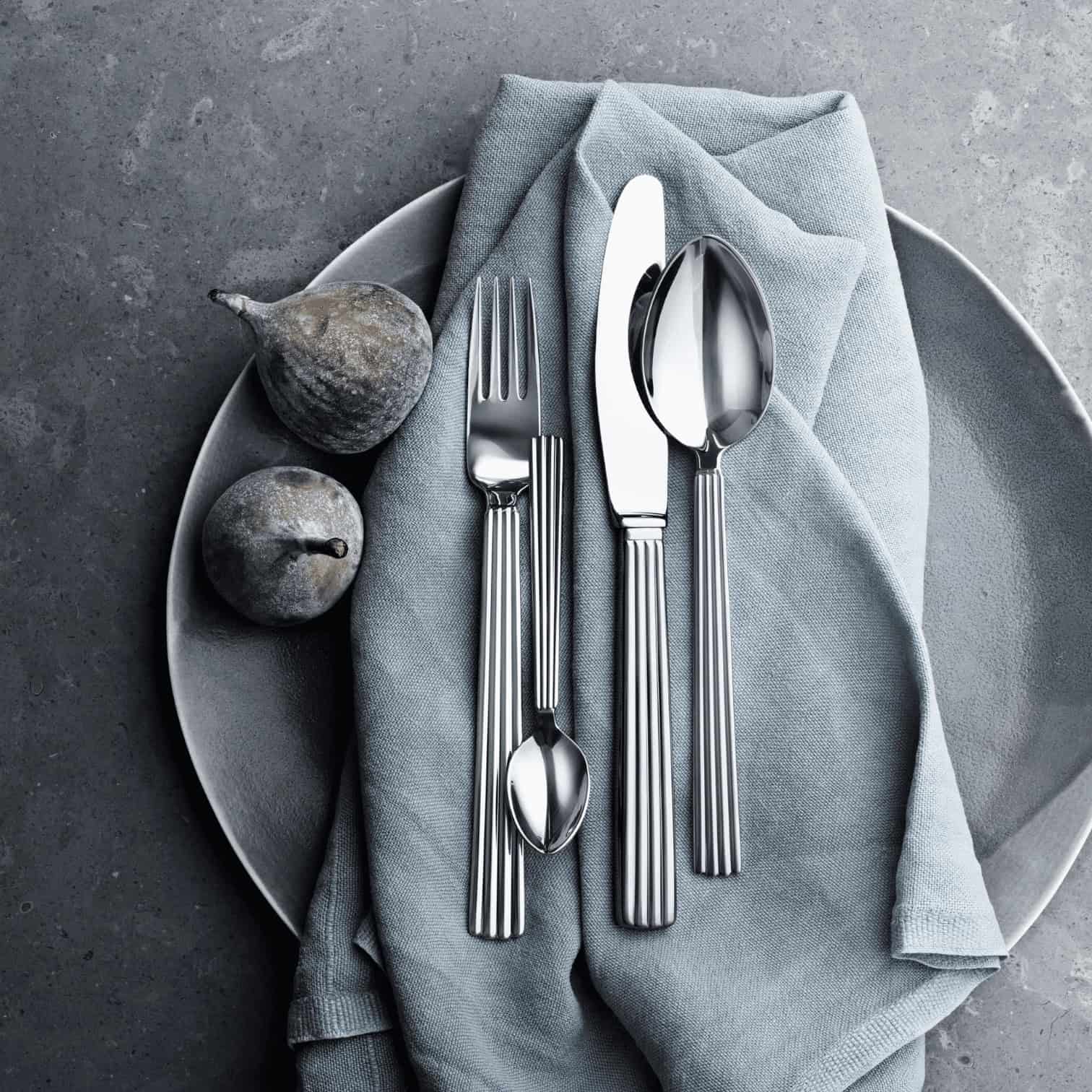 Izveidojiet elegantu un pārlaicīgu galda klājumu ar Georg Jensen Bernadotte galda piederumu komplektu. Galda piederumi ir izgatavoti no pulēta nerūsējošā tērauda ar rievotiem apaļiem rokturiem, kas ir raksturīgs šai galda piederumu sērijai, kuru 1939. gadā izstrādāja zviedru princis Sigvards Bernadots.